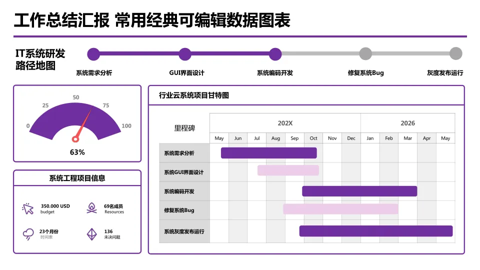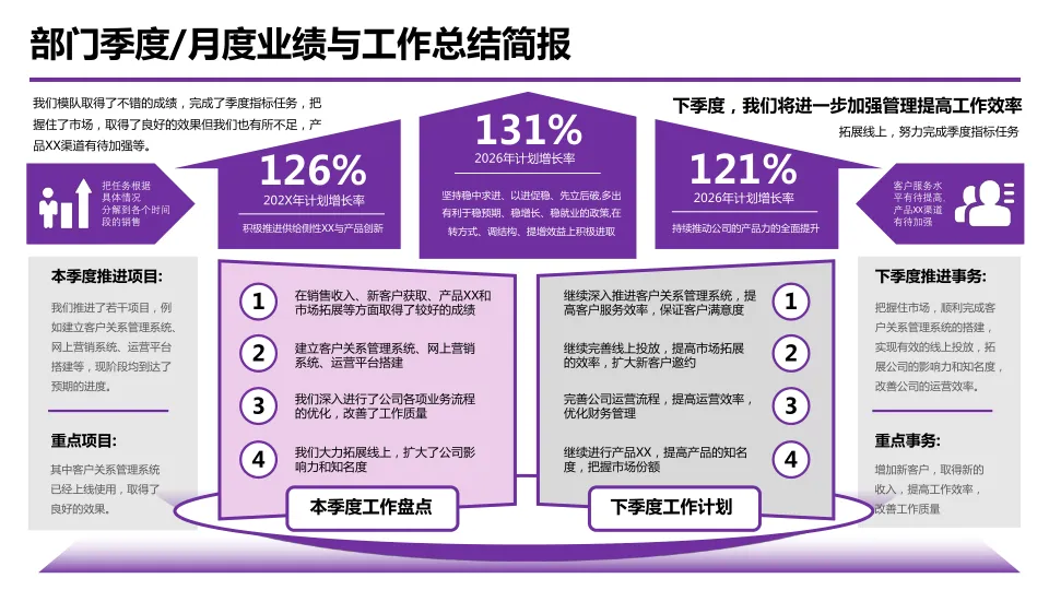 >紫色工作汇报PPT模板