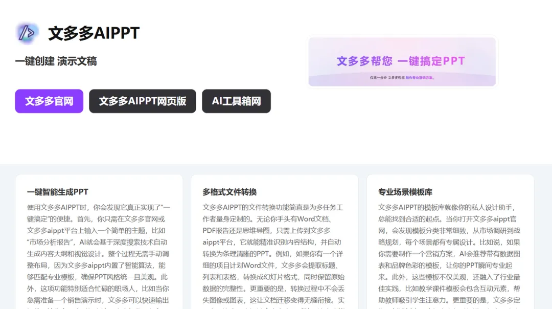 二、文多多AiPPT:高效可控,适配企业批量制作需求