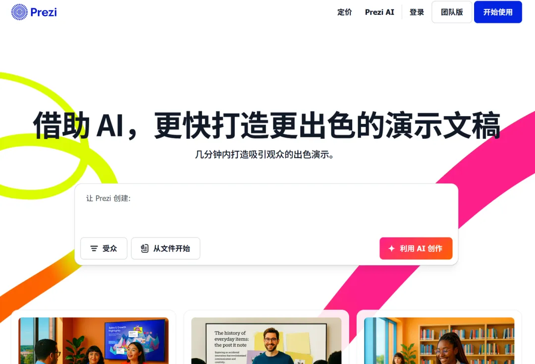 最后,若你希望ppt演示更有创意、突出内容逻辑递进关系,比如项目提案、战略规划等场景,可选择Prezi。它的缩放式演示模式打破了传统ppt的线性翻页局限,能够清晰呈现内容之间的逻辑关联,让演示更具吸引力和层次感,同时支持AI辅助生成和团队协作,能够解决“怎么做ppt更有创意、逻辑更清晰”的难题,适合追求创意演示效果的职场人。