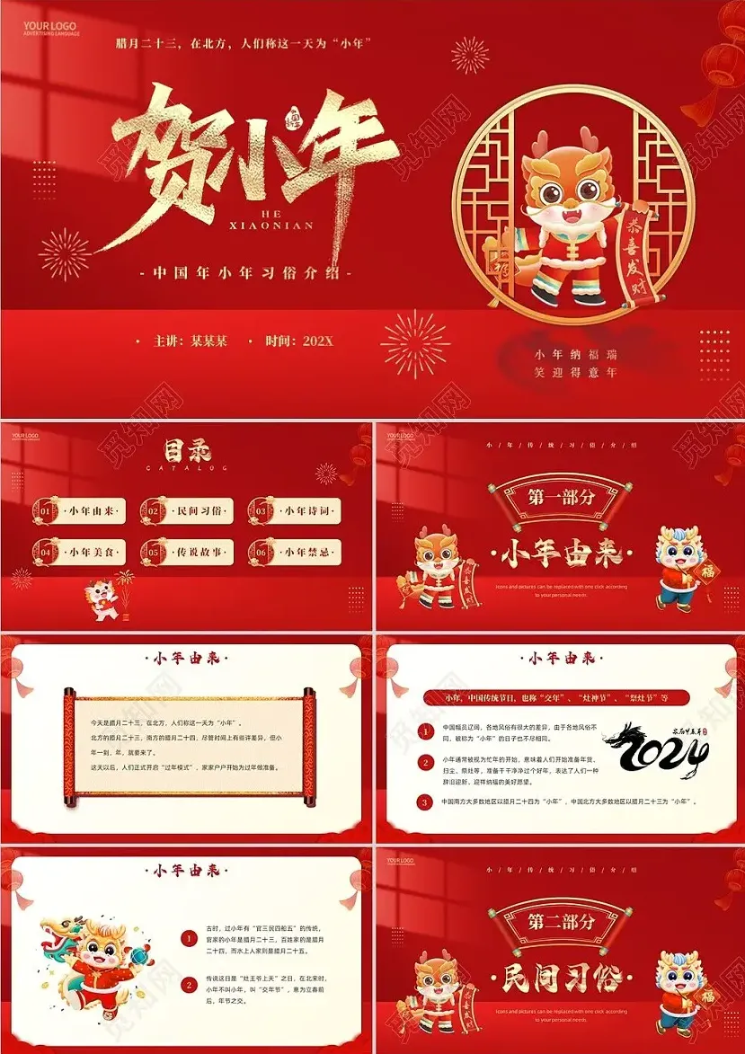 今天小编给大家精选了10套小年主题PPT模板,可用于节日介绍、主题班会、新年宣传等,有需要的可以直接滑到文末下载!