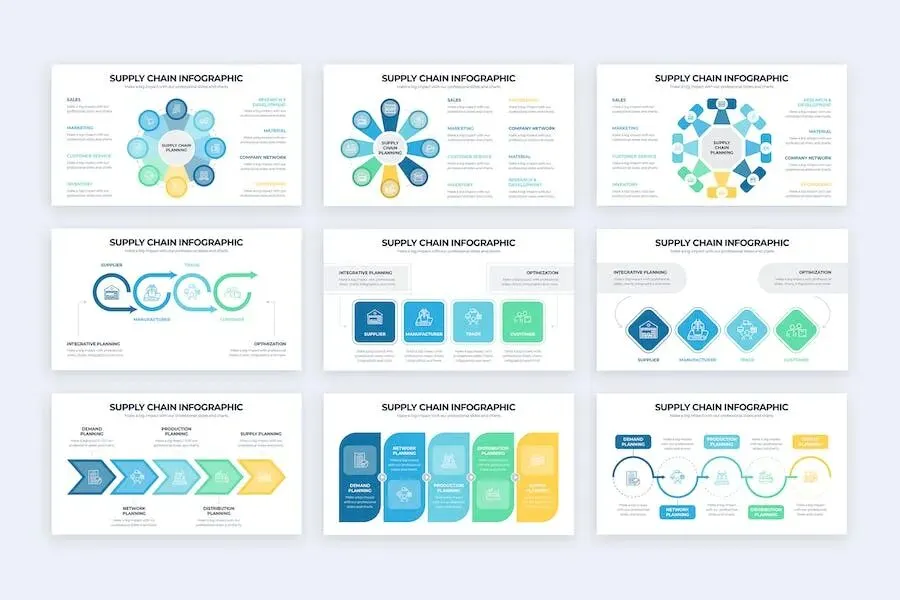 商业供应链物流管理信息图形PPT模板,本套模板由顶尖PPT提供下载,模板支持PPTX等格式,适用于商业、图形、管理、信息、物流、供应链等类型的需求。模板尺寸规格为1920×1080。效果预览图中的配图仅作示意,源文件不包含。下载即可获可编辑的源文件,轻松定制,满足您的多样化需求。