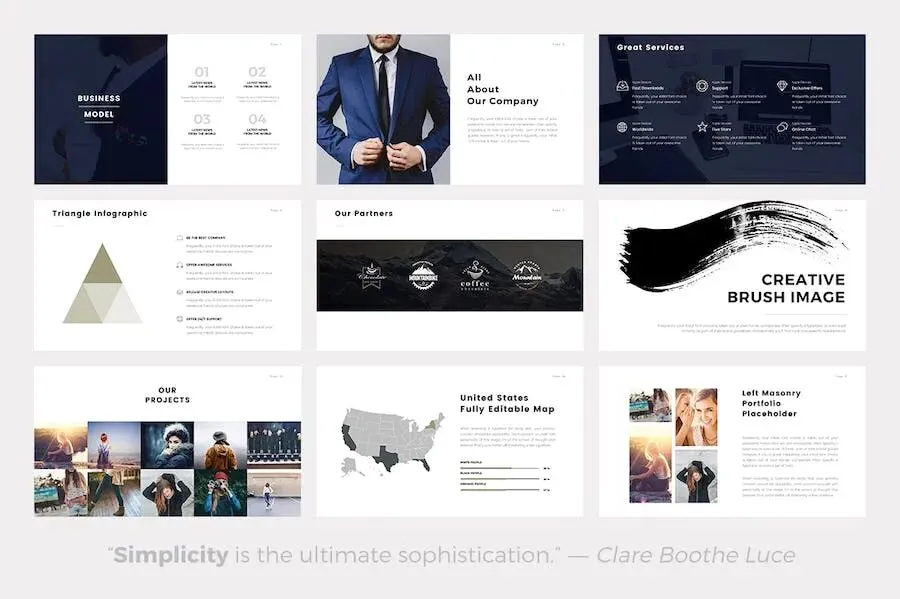 极简风格商务办公展示PPT模板,本套模板由顶尖PPT提供下载,模板支持PPTX等格式,适用于商务、极简、办公等类型的需求。模板尺寸规格为1920×1080。效果预览图中的配图仅作示意,源文件不包含。下载即可获可编辑的源文件,轻松定制,满足您的多样化需求。