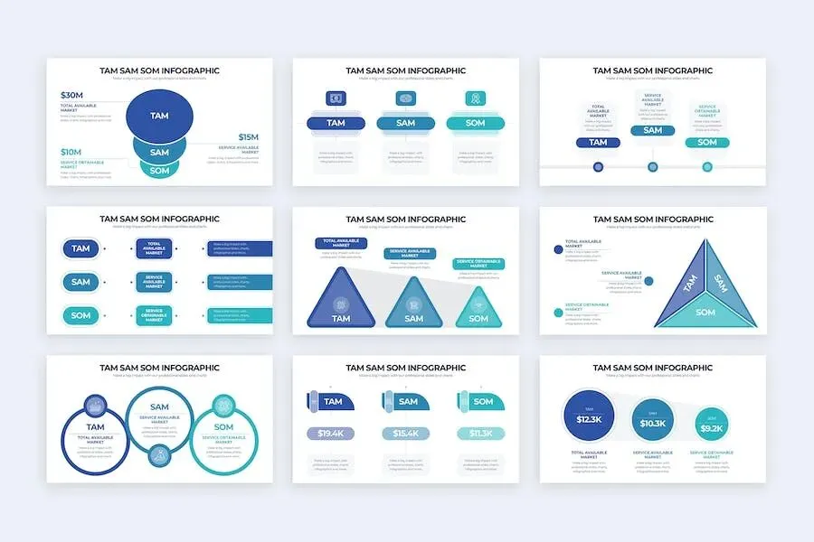 商务TAM SAM SOM市场分析信息图形PPT模板,本套模板由顶尖PPT提供下载,模板支持PPTX等格式,适用于商务、市场、图形、分析、信息等类型的需求。模板尺寸规格为1920×1080。效果预览图中的配图仅作示意,源文件不包含。下载即可获可编辑的源文件,轻松定制,满足您的多样化需求。