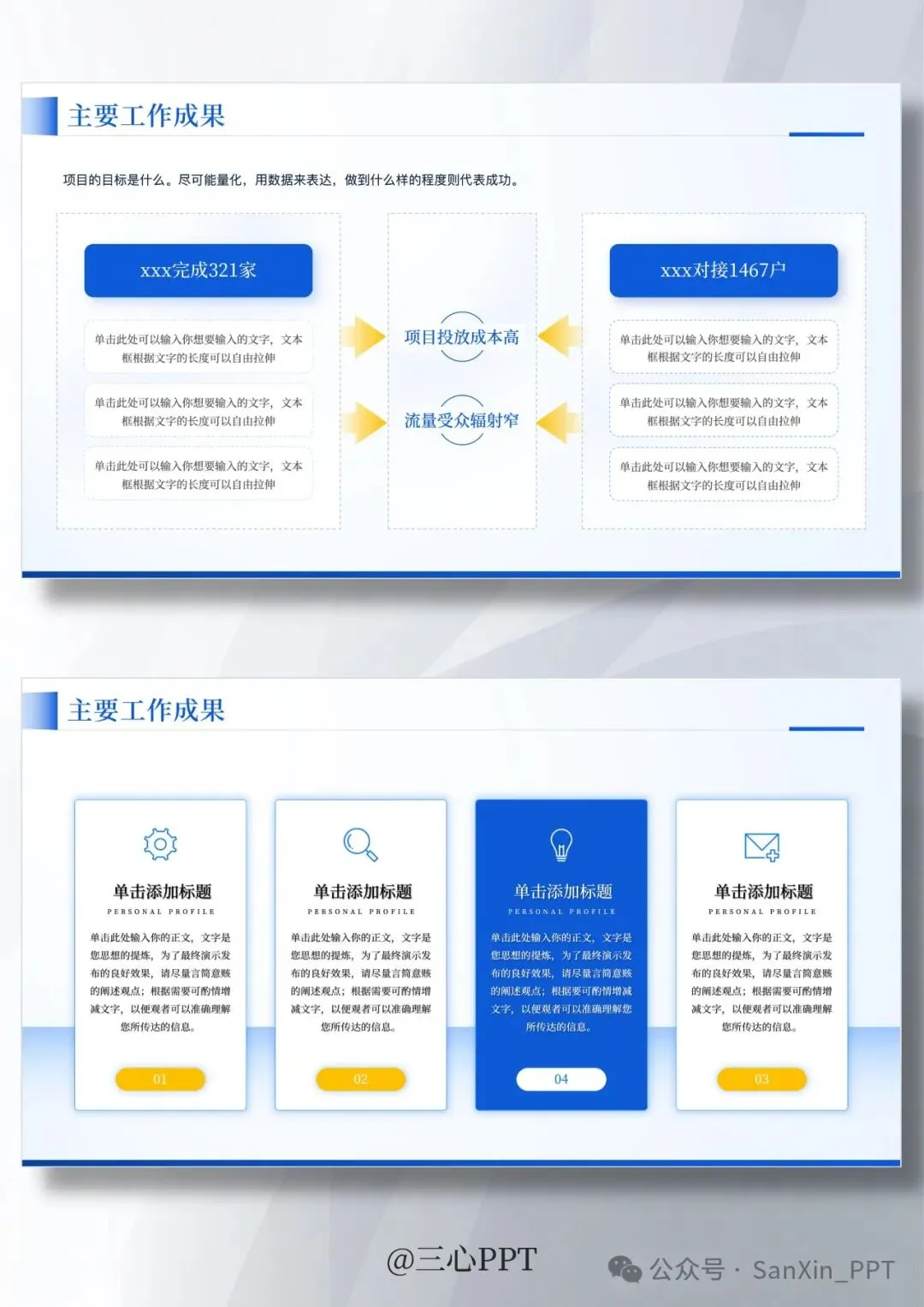 【三心PPT设计】✍️7年PPT设计经验,以“逻辑的完整性、内容的条理性”为制作理念,擅长岗位竞聘、述职汇报、工作总结、职称答辩、招商融资、公司宣传等各类型PPT代做制作美化服务,年服务客户超300+,如有PPT制作美化设计需求欢迎点击图片,长按识别图中二维码添加即可咨询沟通哦~