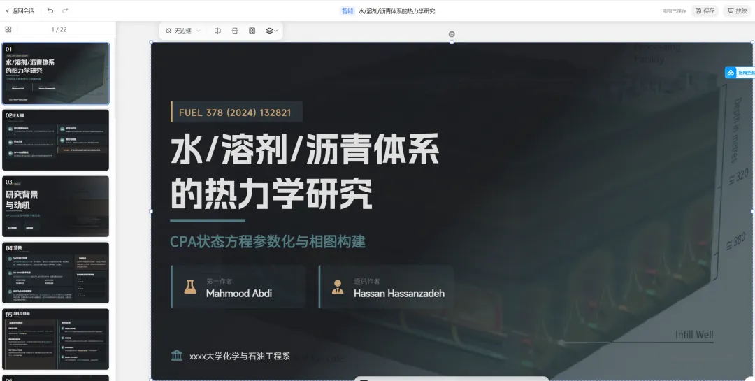 对于科研人员来说,阅读文献,撰写和呈现科研报告、组会PPT、论文答辩PPT已经成了日常工作的一部分。而在做PPT的过程中,其实我们现在完全可以让AI工具来帮助我们做基础的ppt,只需要将一些重要材料、文献导入,做一个初步ppt还是很非常不错的,然后我们继续手动润色即可。