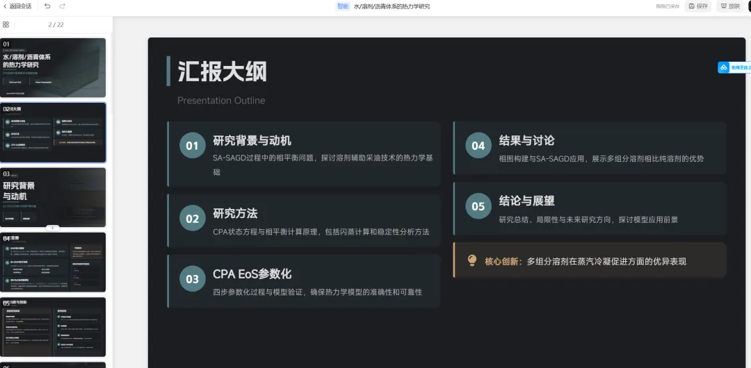 真的PPT从设计上,Kimi的ppt风格倾向专业理性,是较适合科研学者使用的汇报风格,和我们平时组会PPT、科研报告PPT、项目PPT、论文答辩PPT风格非常一致