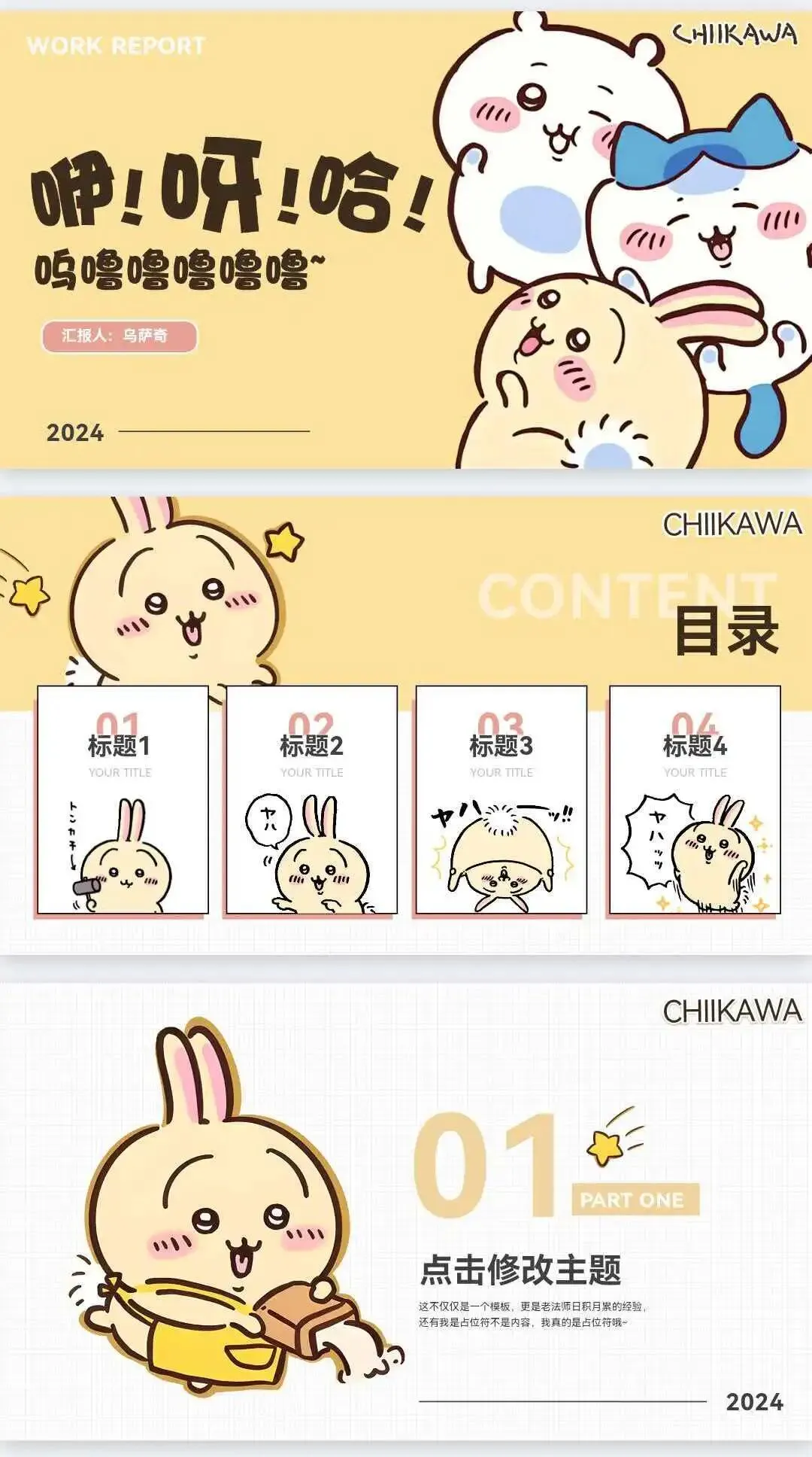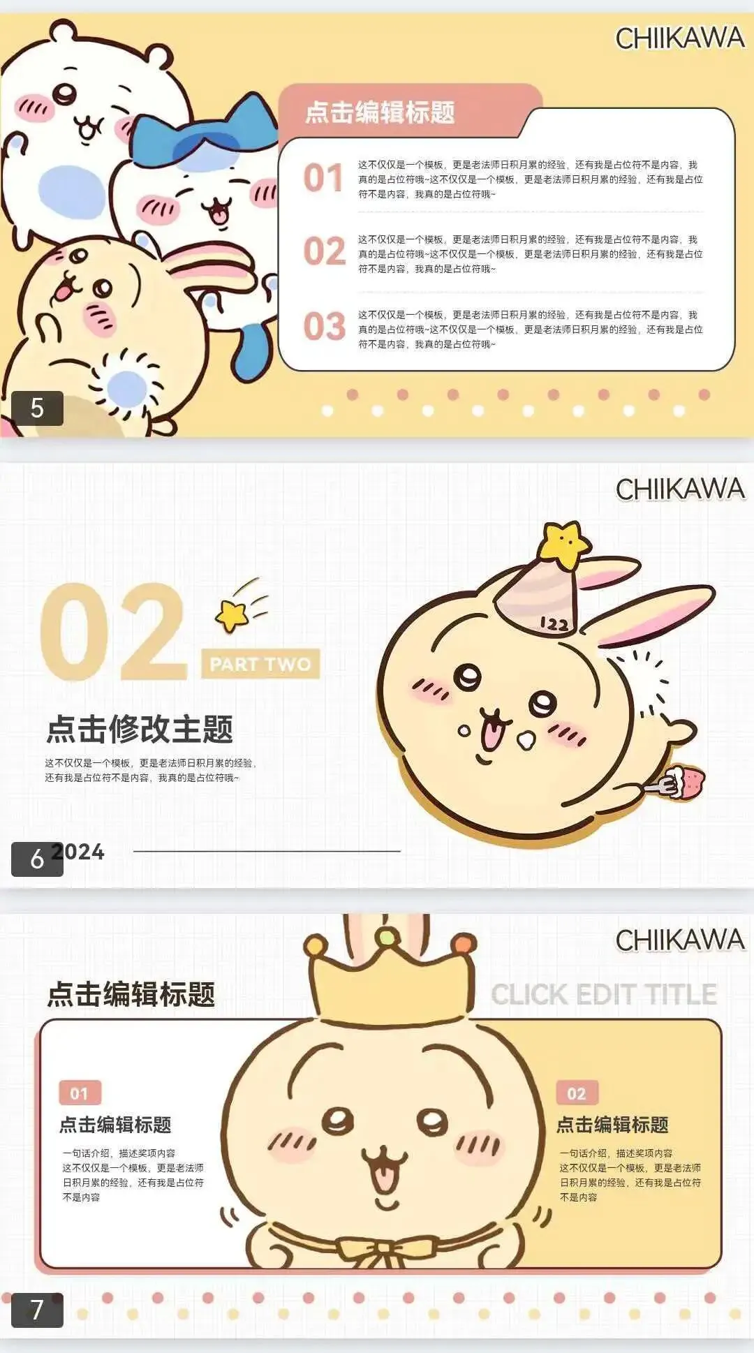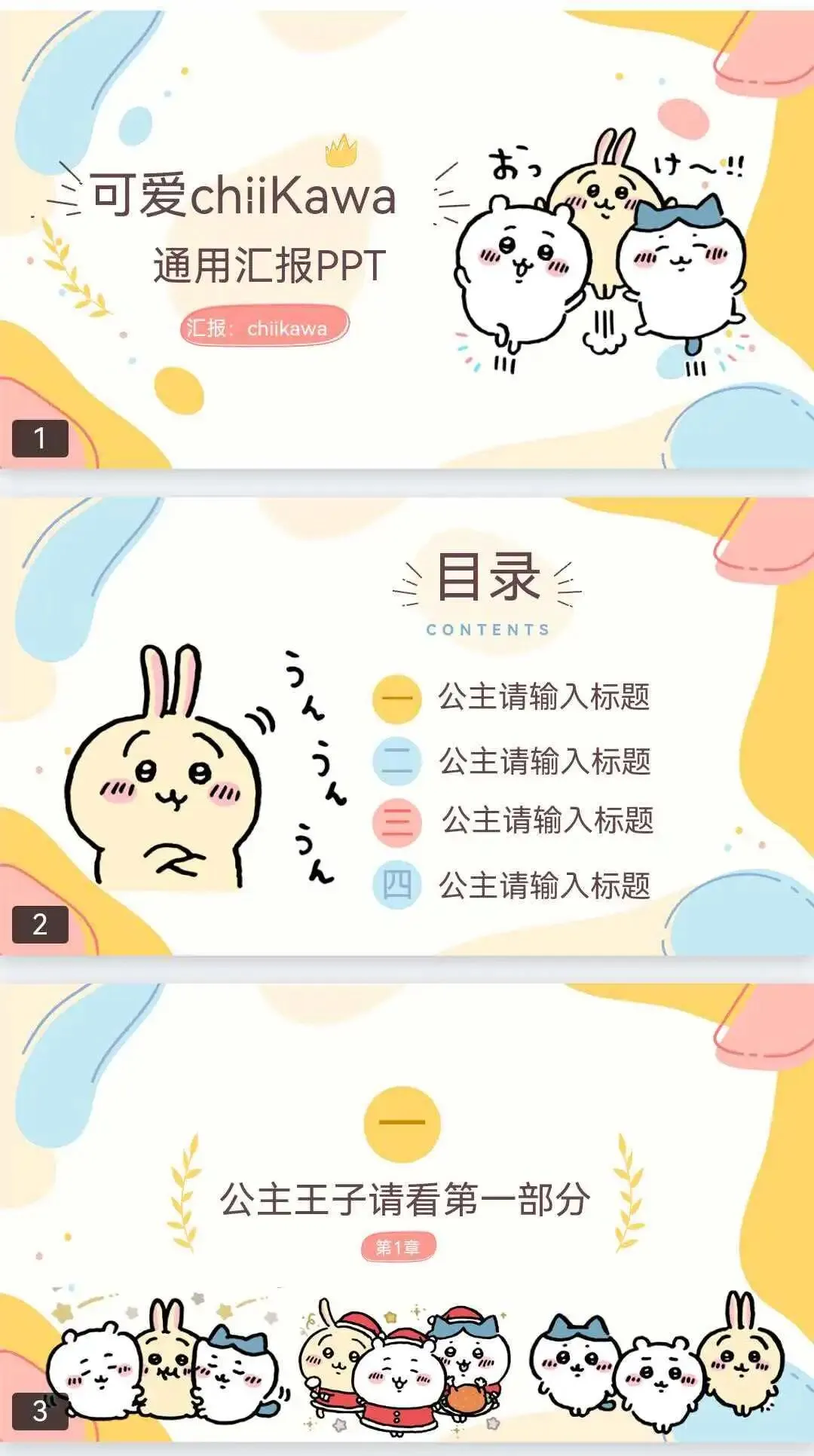 本文内容分享【可爱Chiikawa三小只系列PPT模板】