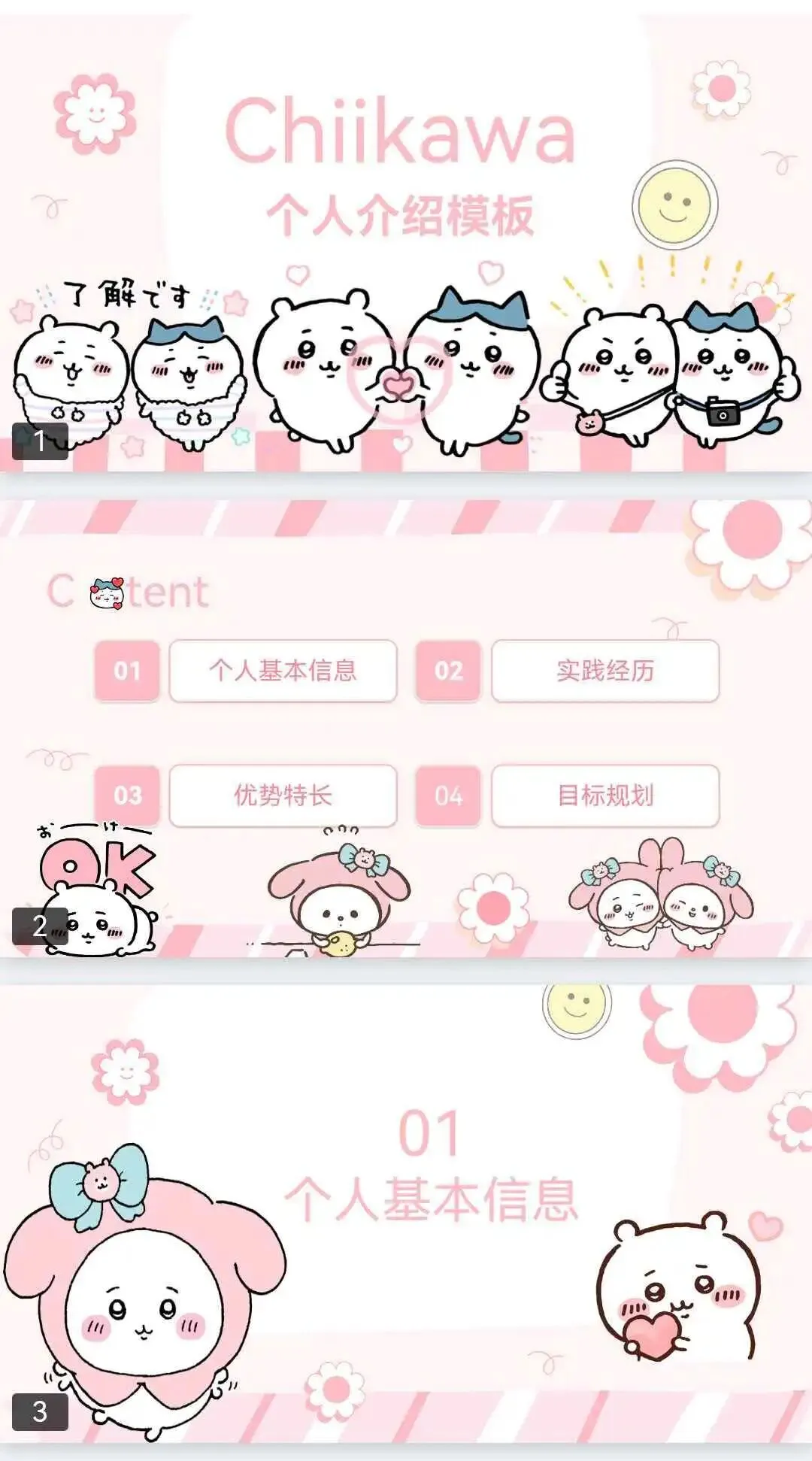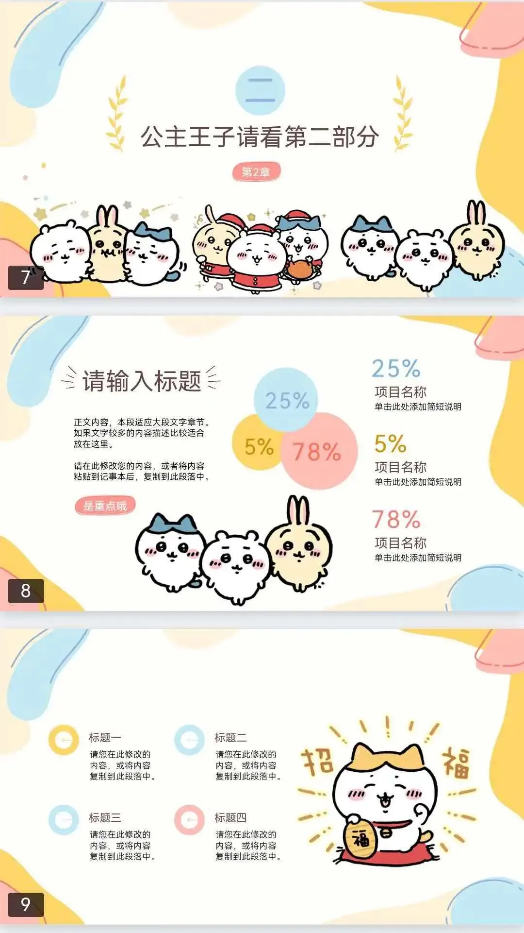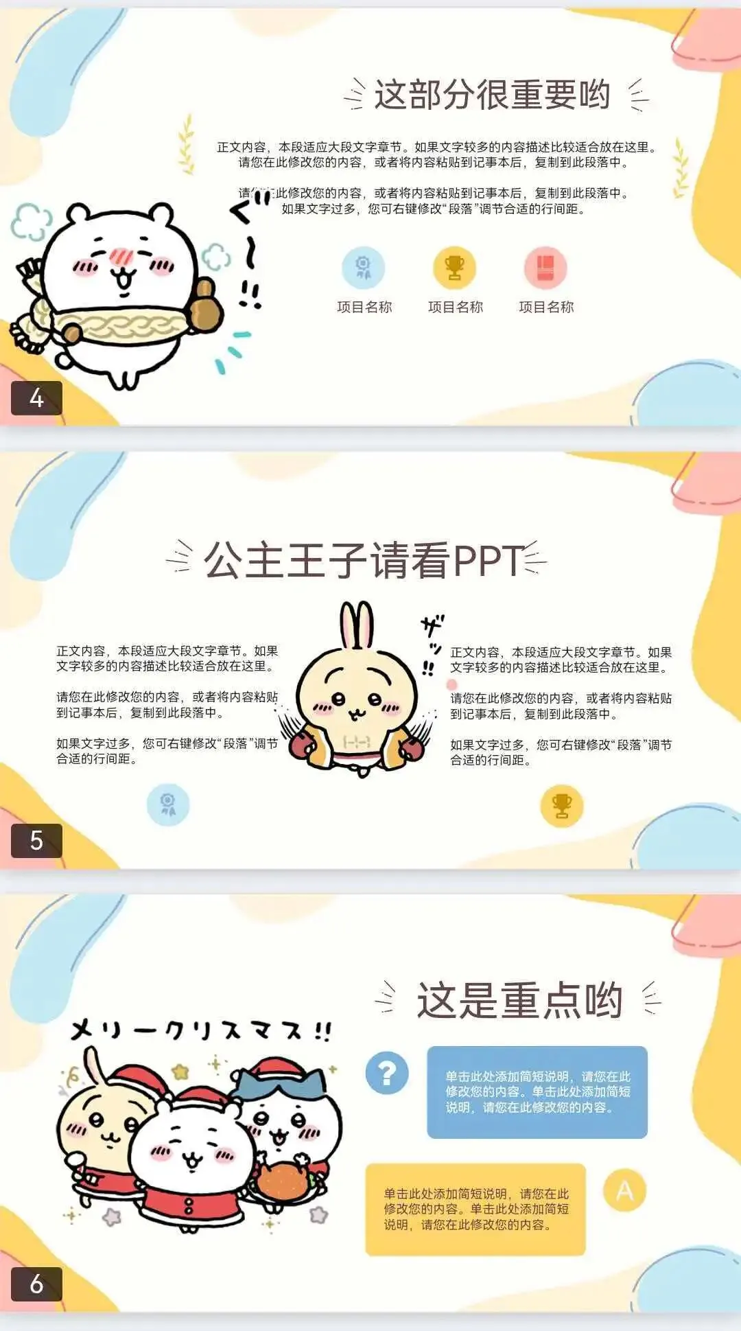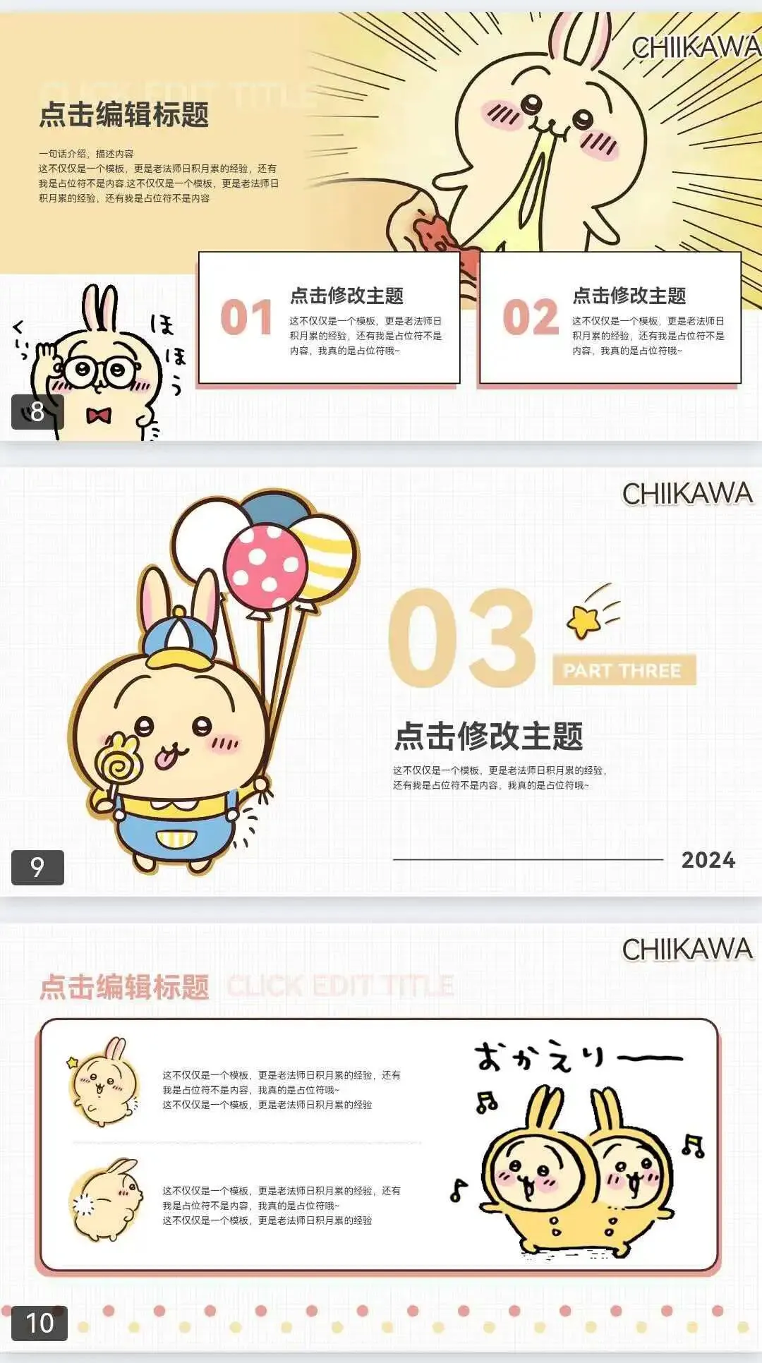 本文内容分享【可爱Chiikawa三小只系列PPT模板】