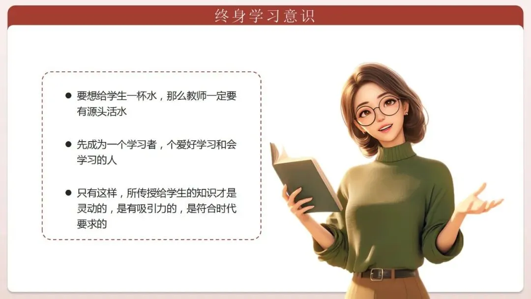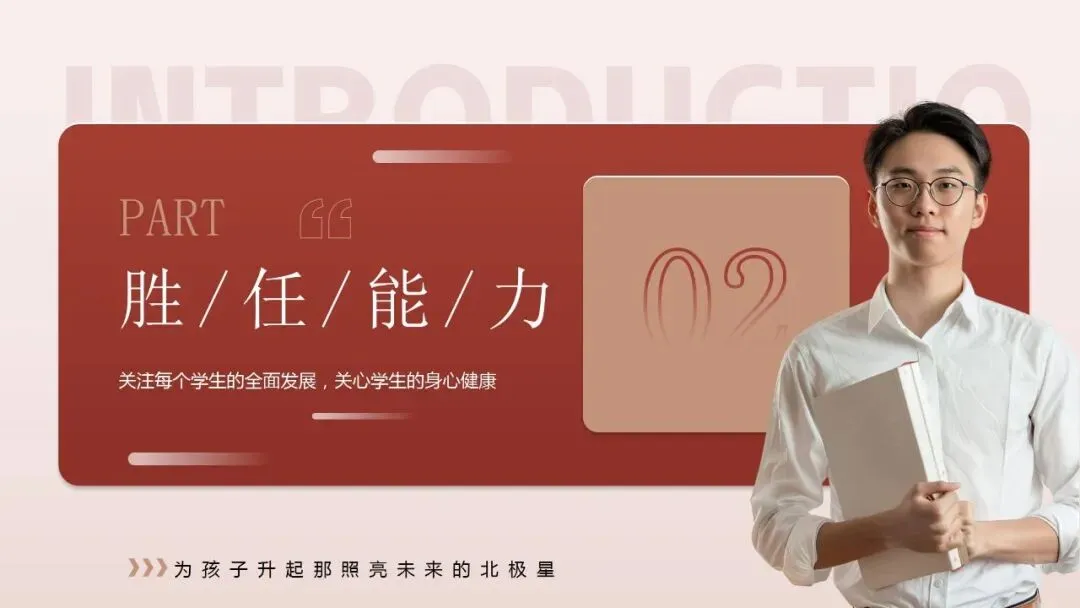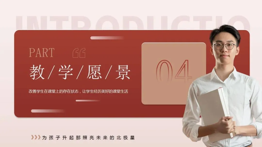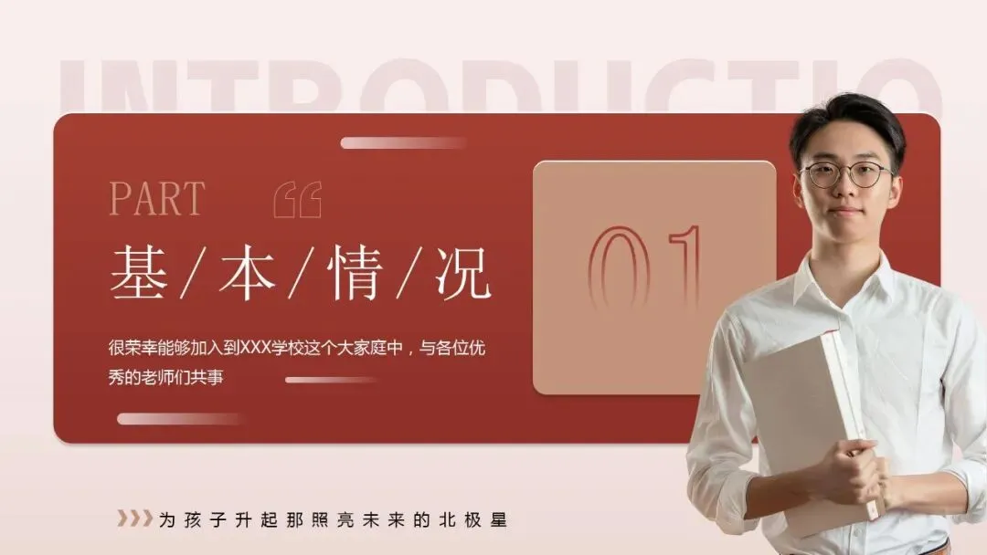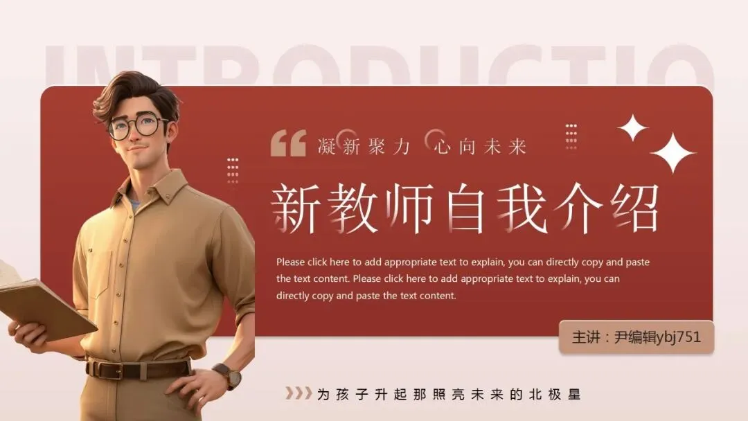 【红色立体卡通老师背景的新教师自我介绍PPT模板】