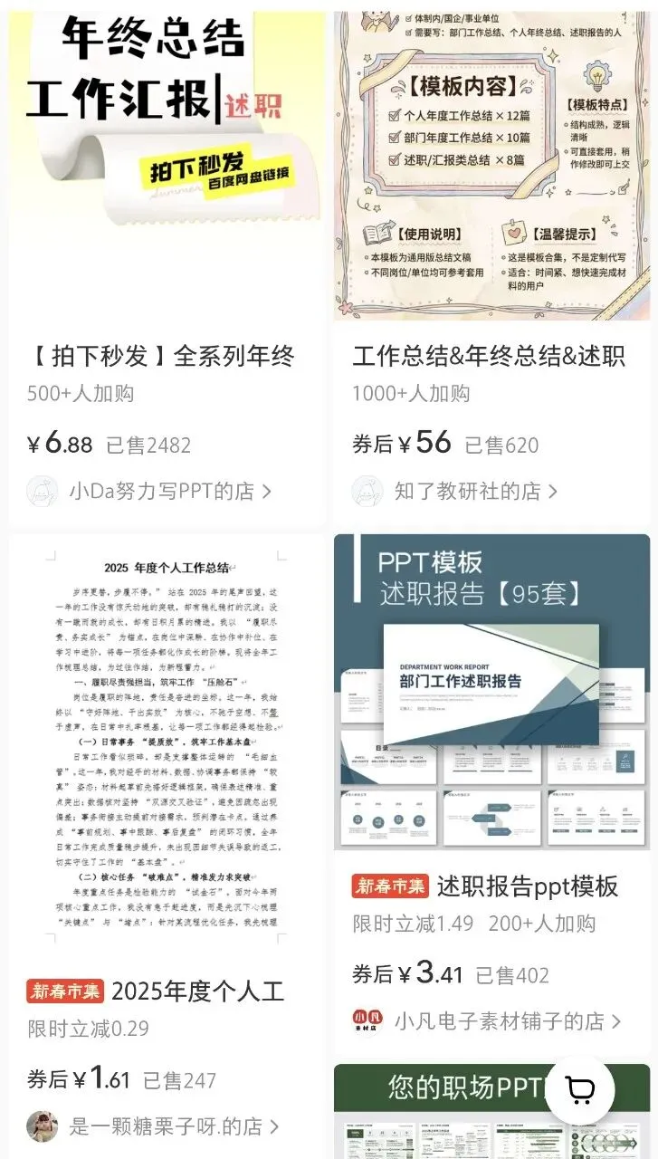 - 职场刚需款:年终总结、述职报告、项目提案,加入数据看板、动态过渡效果,定价59-99元,企业用户愿为“省心”买单;