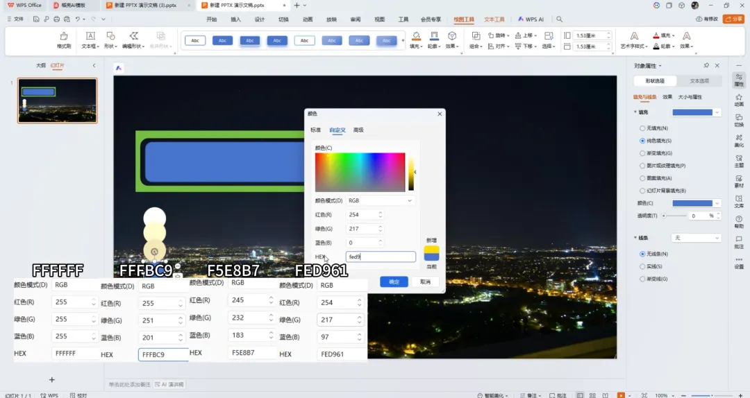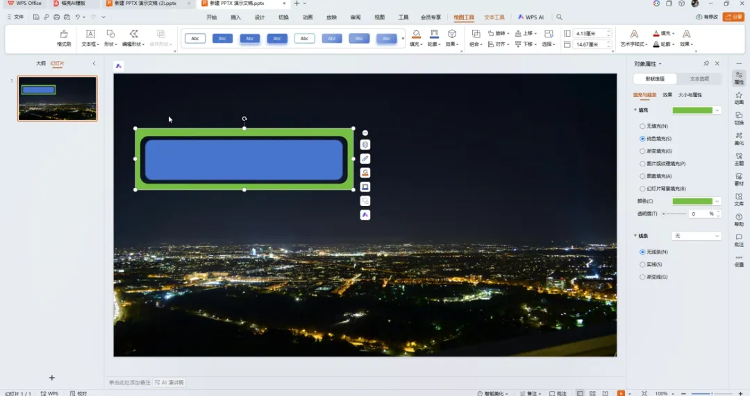 ④选择俩个矩形置于顶层,设置幻灯片背景填充在框内写好上文案,预览一下效果,这样一个酷炫的追光强调光效就做好啦。