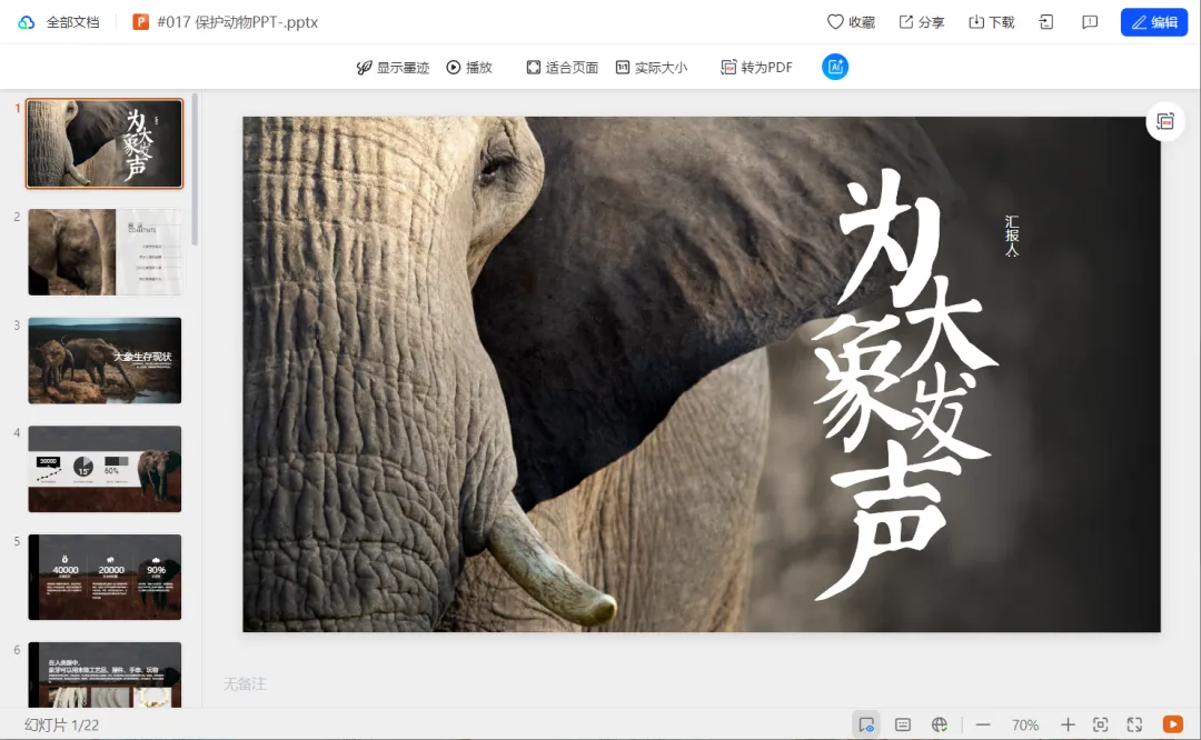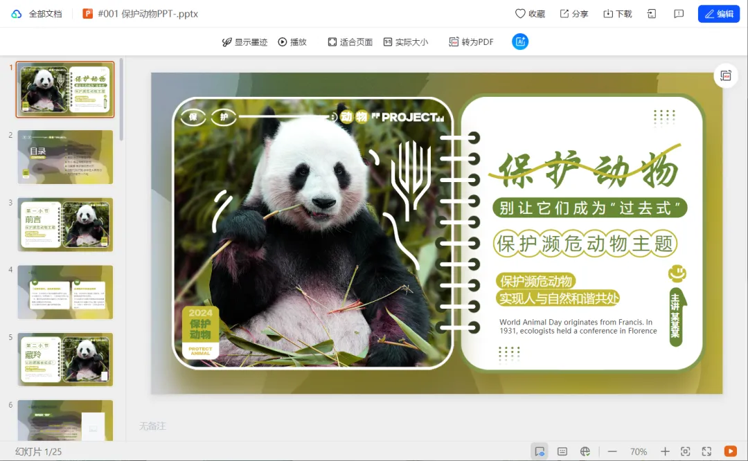 【免费下载】35 套 保护动物 PPT模板(无水印,可编辑)