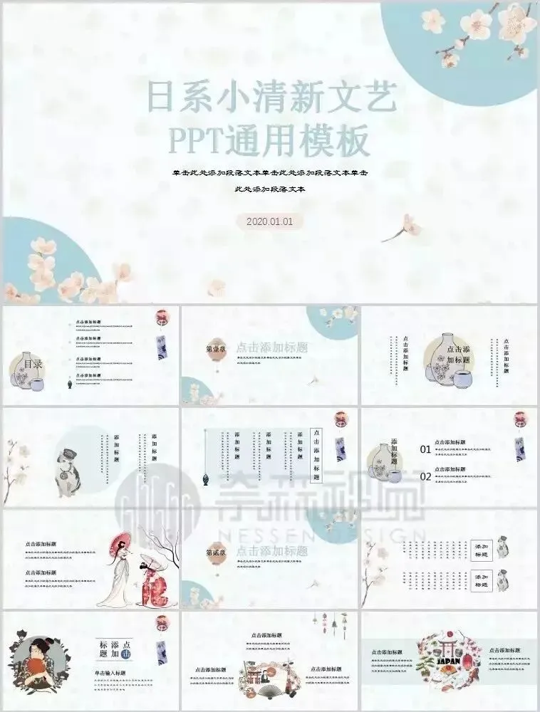 资源包共计60套日系和风PPT模版,