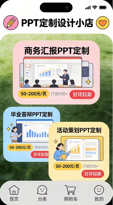 接单平台:先在闲鱼接单,后入驻PPTSTORE