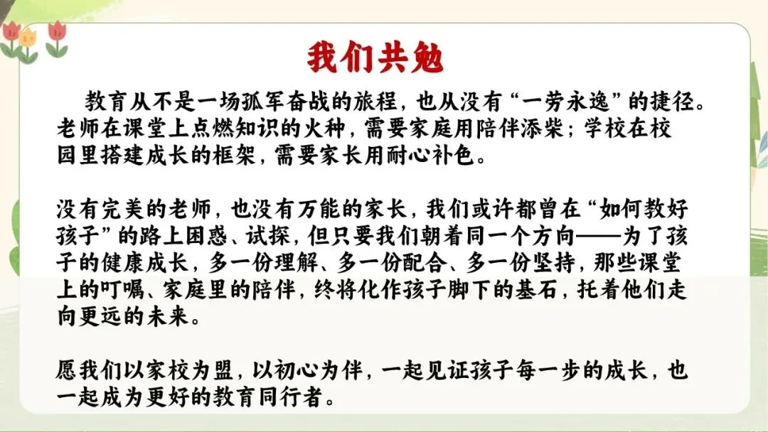 🍀教育是一场美丽的相遇,老师遇见孩子,爱心与欢笑相依;老师遇见家长,责任与信任相伴。遇见,是幸福的启程,双向奔赴就是教育最好的模样,亲爱的家长朋友们!请调整您的状态,让我们携手共赴一场爱的相约吧!~~~