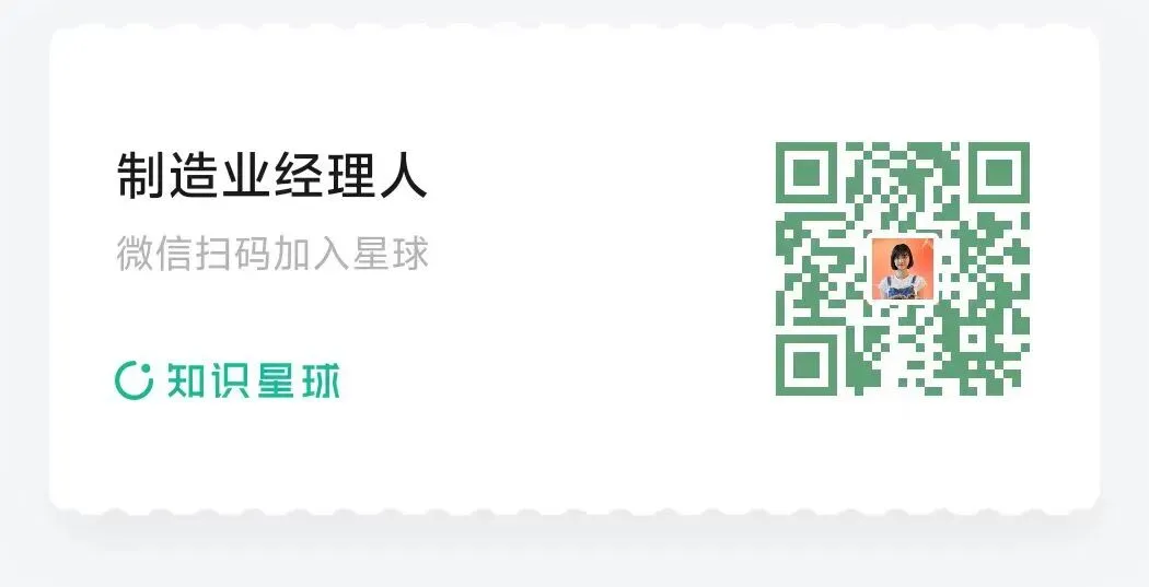 2. 扫描右侧二维码,加入【制造业经理人】知识星球,可免费下载公众号所有培训资料电子版。
