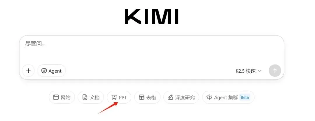 右下角的默认模型就是新发布的 K2.5版本了,输入框中的默认提示告诉用户它能做什么,输入框下面还有一排功能按钮。