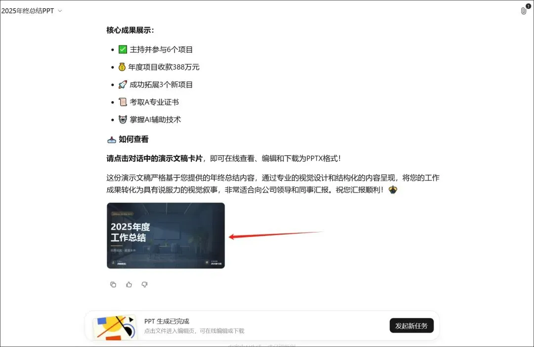 输入本文上一小节模板3基于文件版的提示词,一键制作PPT。