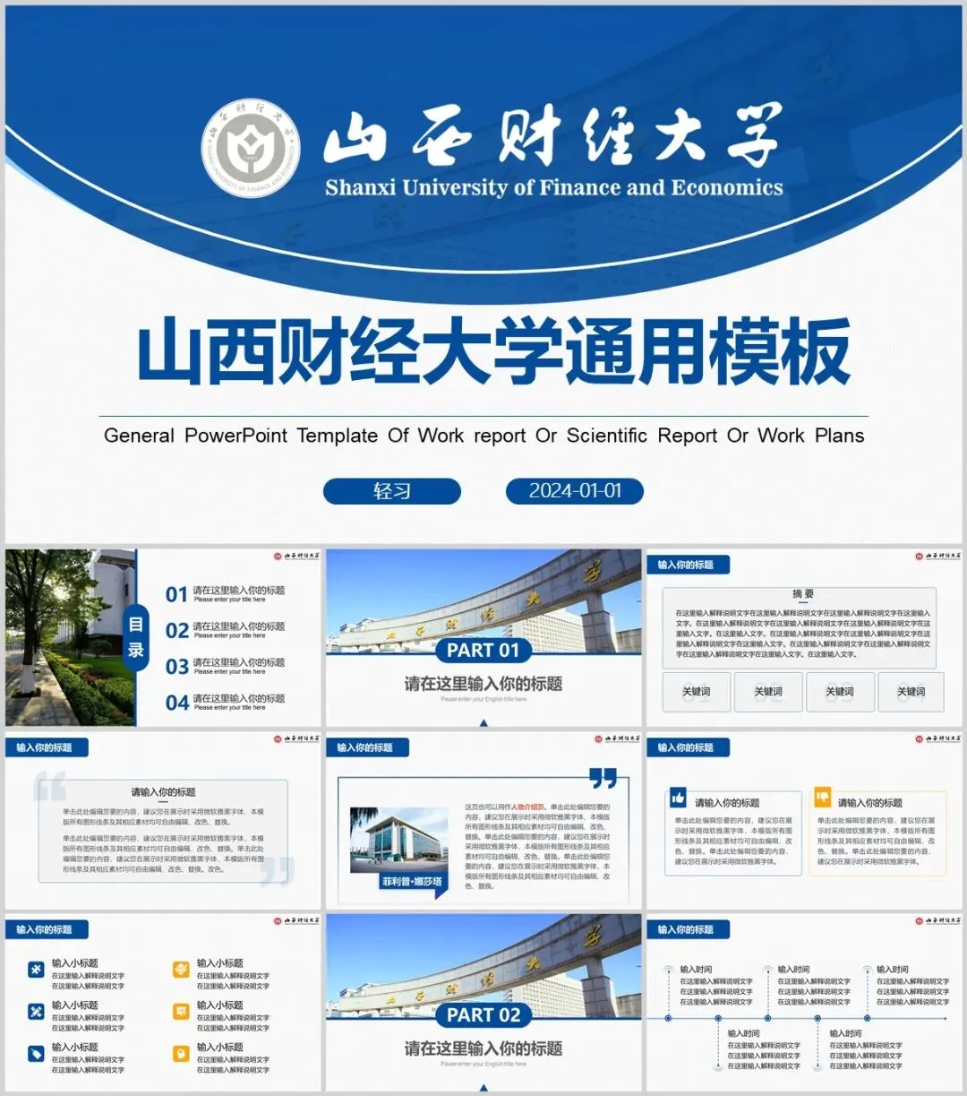 山西财经大学专属PPT模板来了,喜欢的同学不要错过啦!