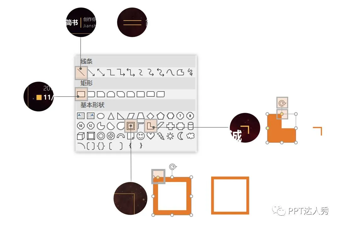 插入菜单栏——形状——选择线条,基本形状。