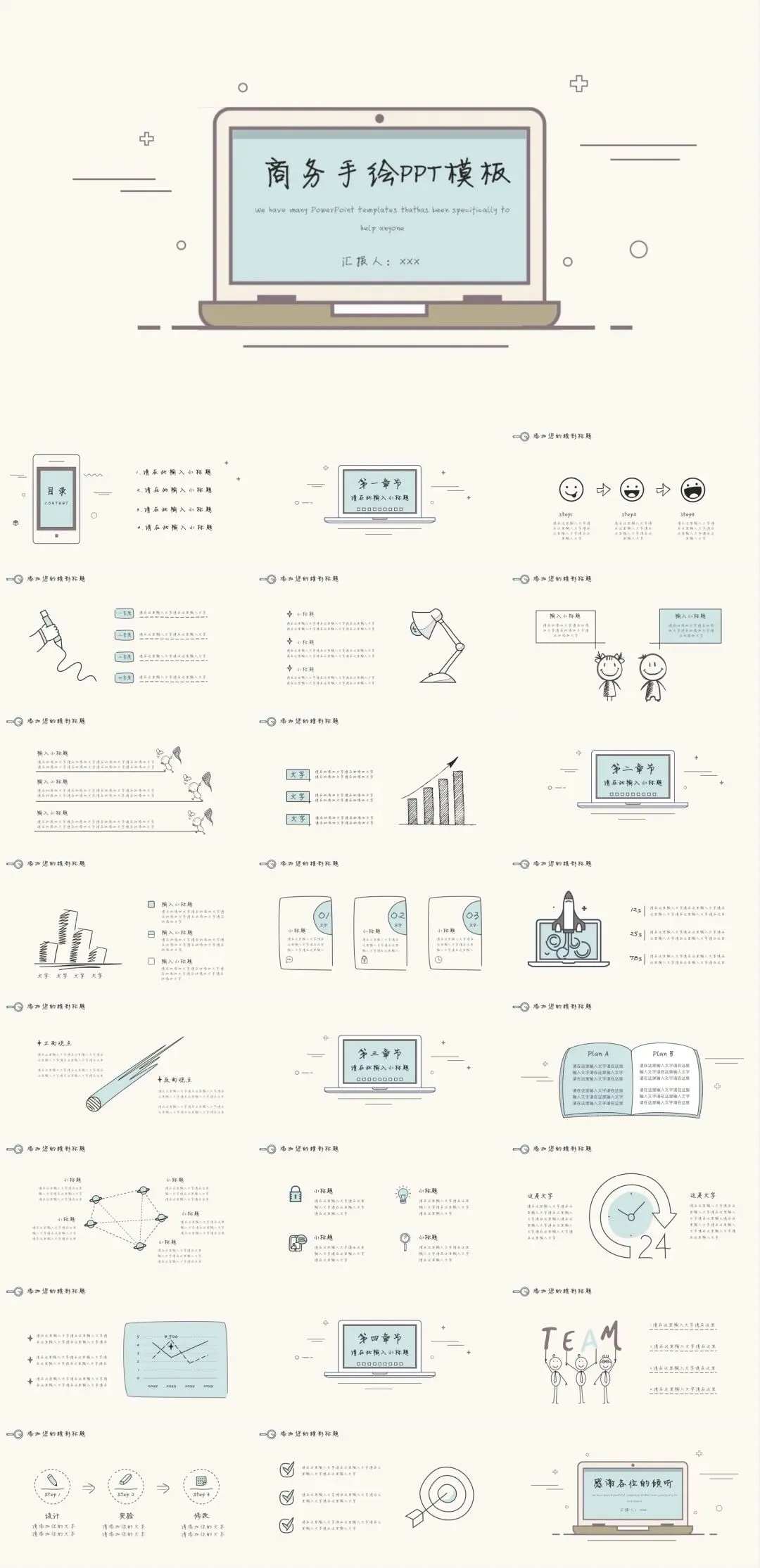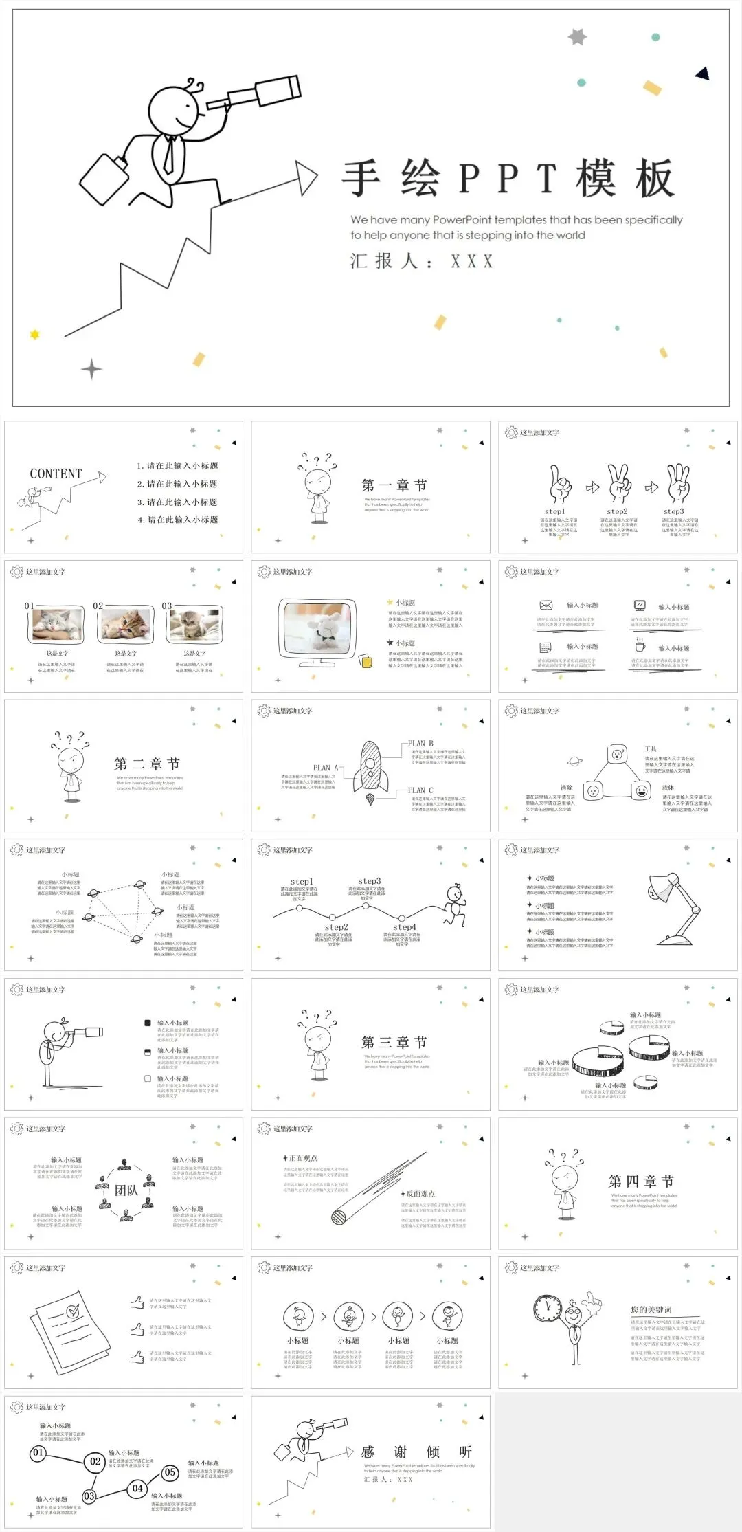 本文分享的是简笔勾勒•线条手绘简约风PPT模板