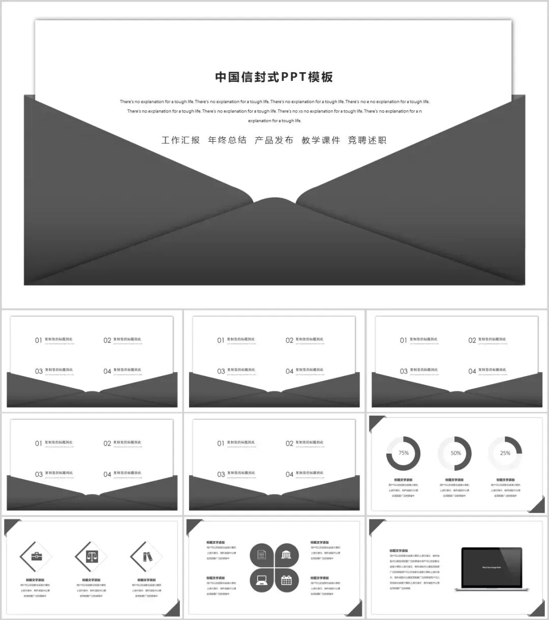 今天带来的信封式PPT模板可以用作答辩、商务等用途哦~~~