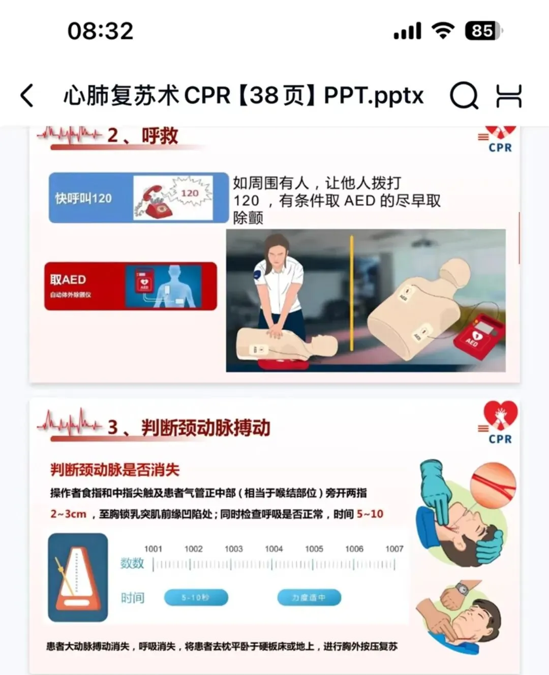 【PPT模板】心肺复苏CPR PPT+逐字稿+操作视频