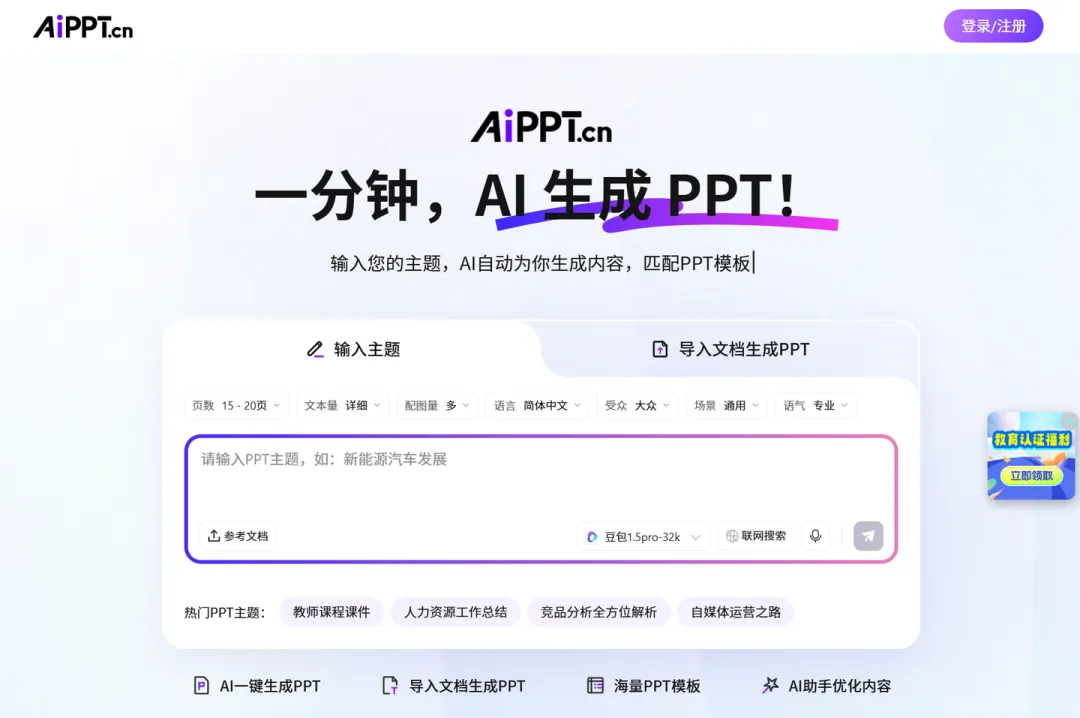 - 体验地址:https://www.aippt.cn/?seller=tnzk3