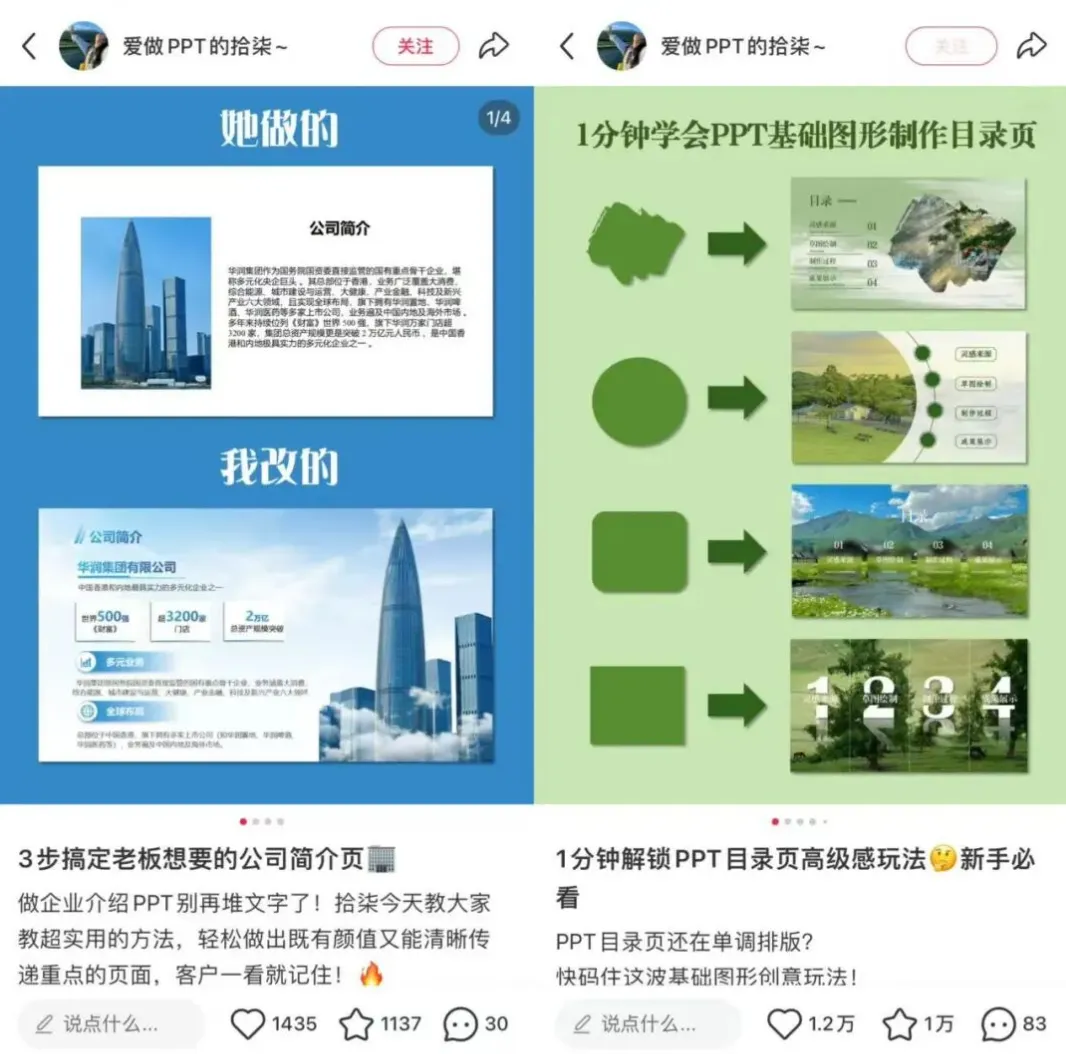 下面放你的模板,排版整齐、配色高级,一眼就能看出差距;或者直接放模板内页的精华截图,加大字标题,比如“领导夸爆的工作汇报PPT,直接套用”,让人一眼就想点进来