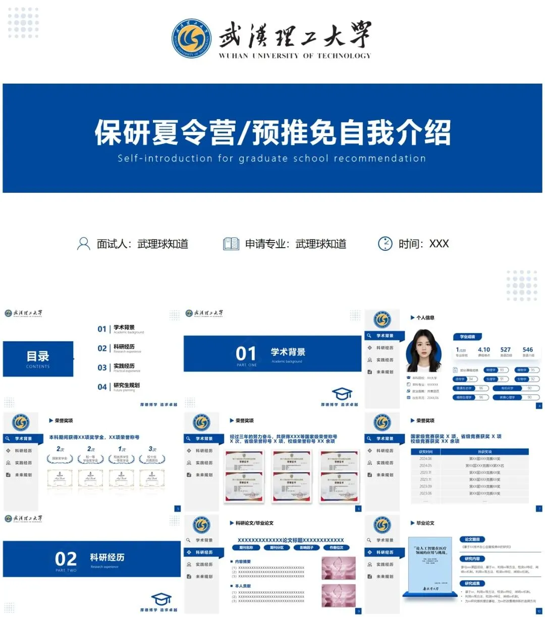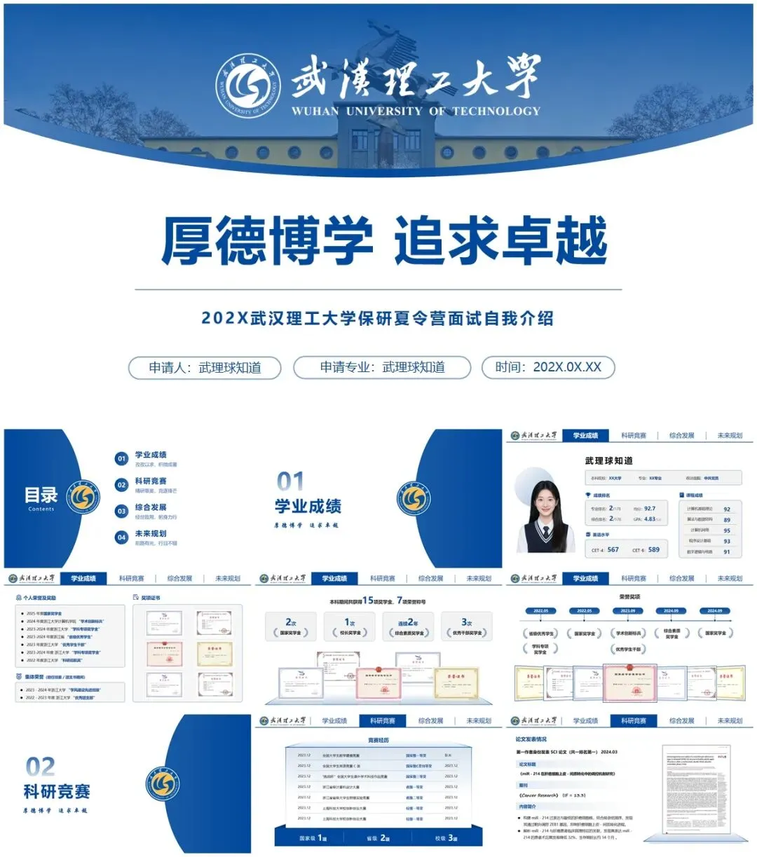 >武汉理工大学保研专属PPT模板来了~