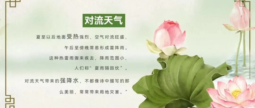 地面受热不均引发强烈对流,午后至傍晚常出现雷阵雨。这种热雷雨特点是降雨时间短、范围小,但强度较大,有“夏雨隔田坎”的说法。