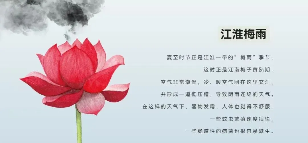夏至前后,江淮流域进入梅雨季节,冷暖空气交汇导致阴雨连绵,空气湿度极高,器物易发霉,需注意防潮和疾病预防。