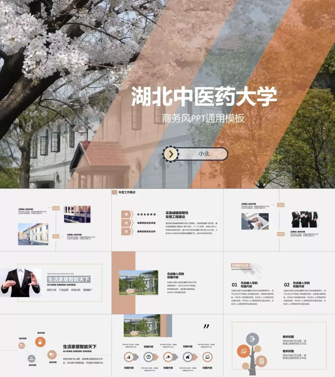 包含了高校专属校徽,100+套精选PPT,正式大气中又不失高级活泼,很能展现个性与品位,适用于各种毕业答辩、总结汇报、活动策划、个人简历、宣传推广等场合。快快收好!