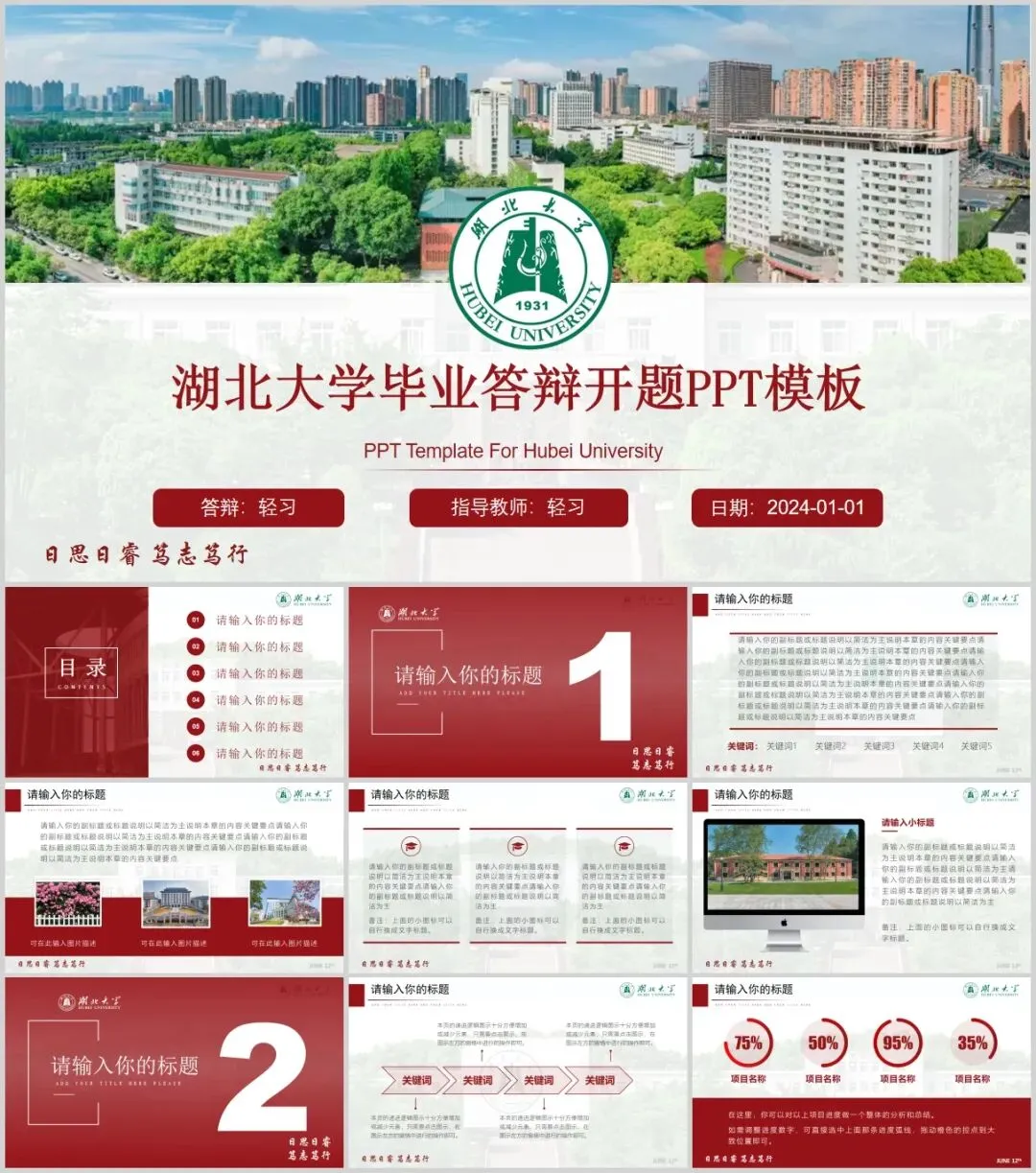 湖北大学专属PPT模板来了,喜欢的同学不要错过啦!