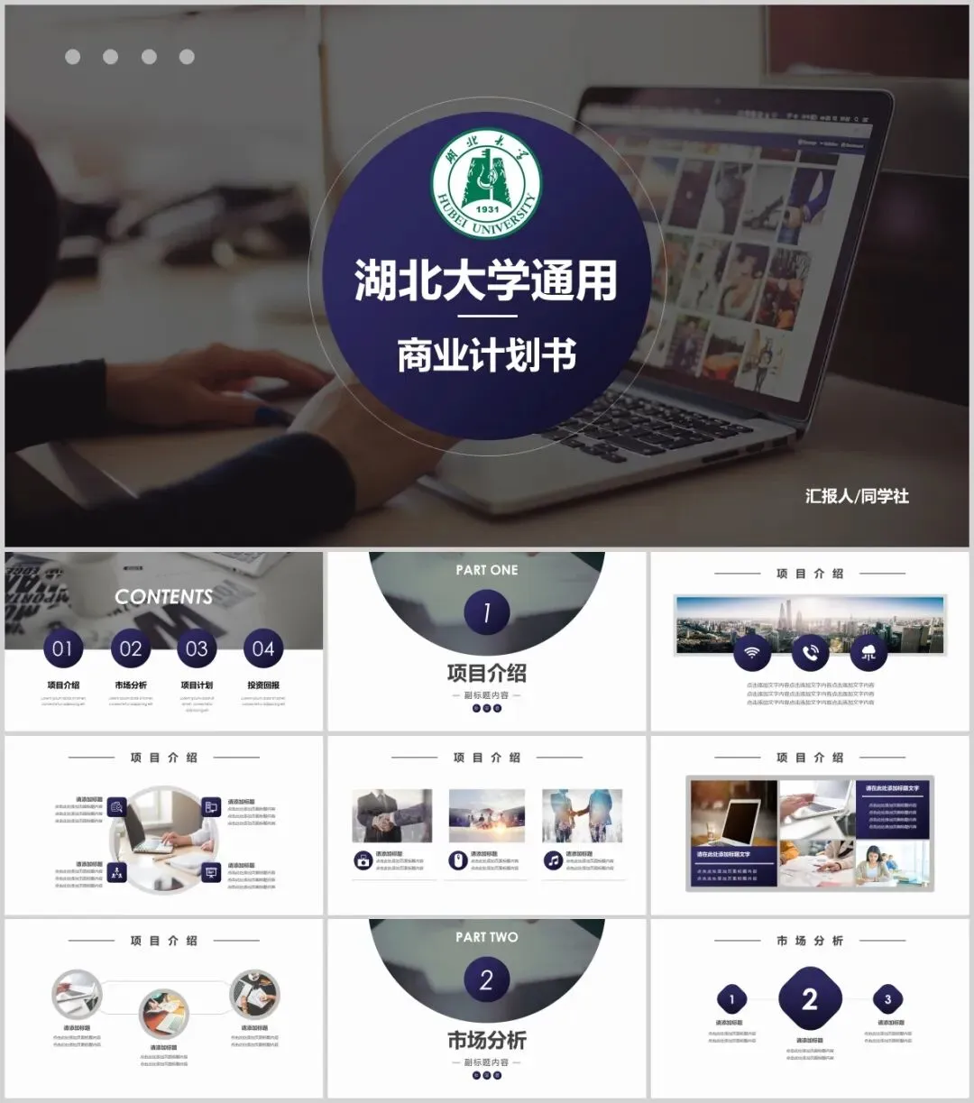包含了高校专属校徽,100+套精选PPT,正式大气中又不失高级活泼,很能展现个性与品位,适用于各种毕业答辩、总结汇报、活动策划、个人简历、宣传推广等场合。快快收好!团结、勤奋、求实、创新