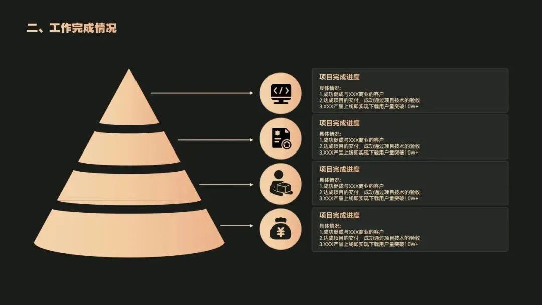 俗话说的好,工作干的好不如汇报做的好,别看是简简单单的PPT,但是确实逻辑思路的梳理,是成果的数据可视化呈现。