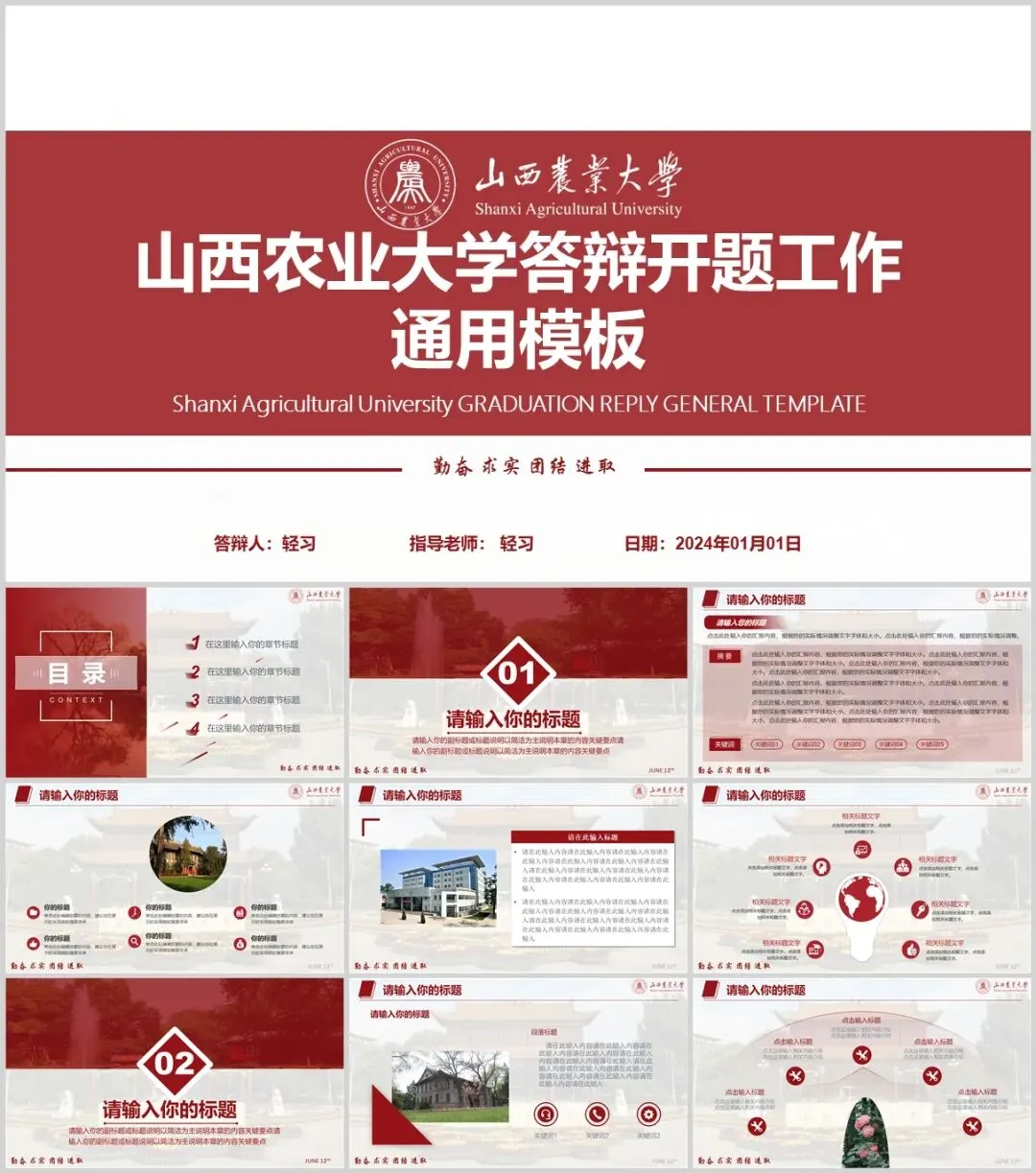 包含了高校专属校徽,100+套精选PPT,正式大气中又不失高级活泼,很能展现个性与品位,适用于各种毕业答辩、总结汇报、活动策划、个人简历、宣传推广等场合。快快收好!团结、创造、求实、奋进