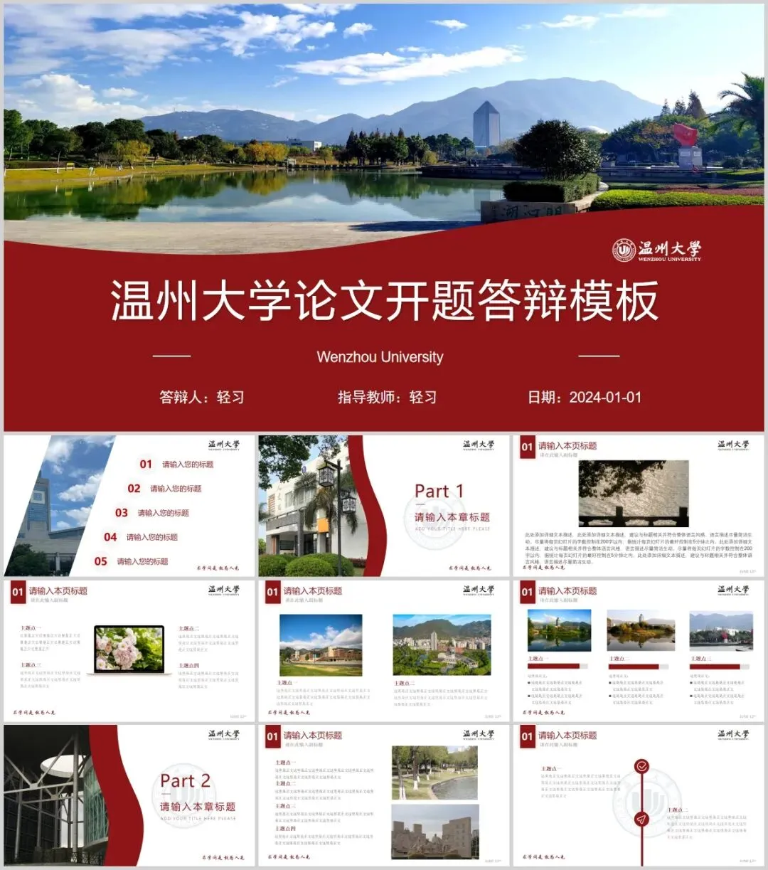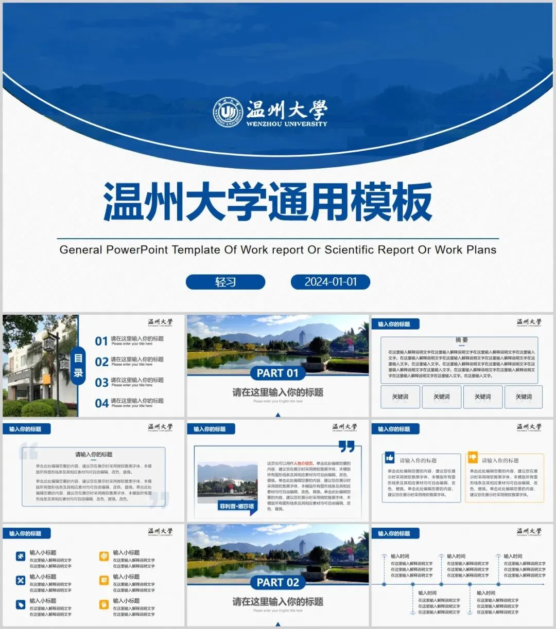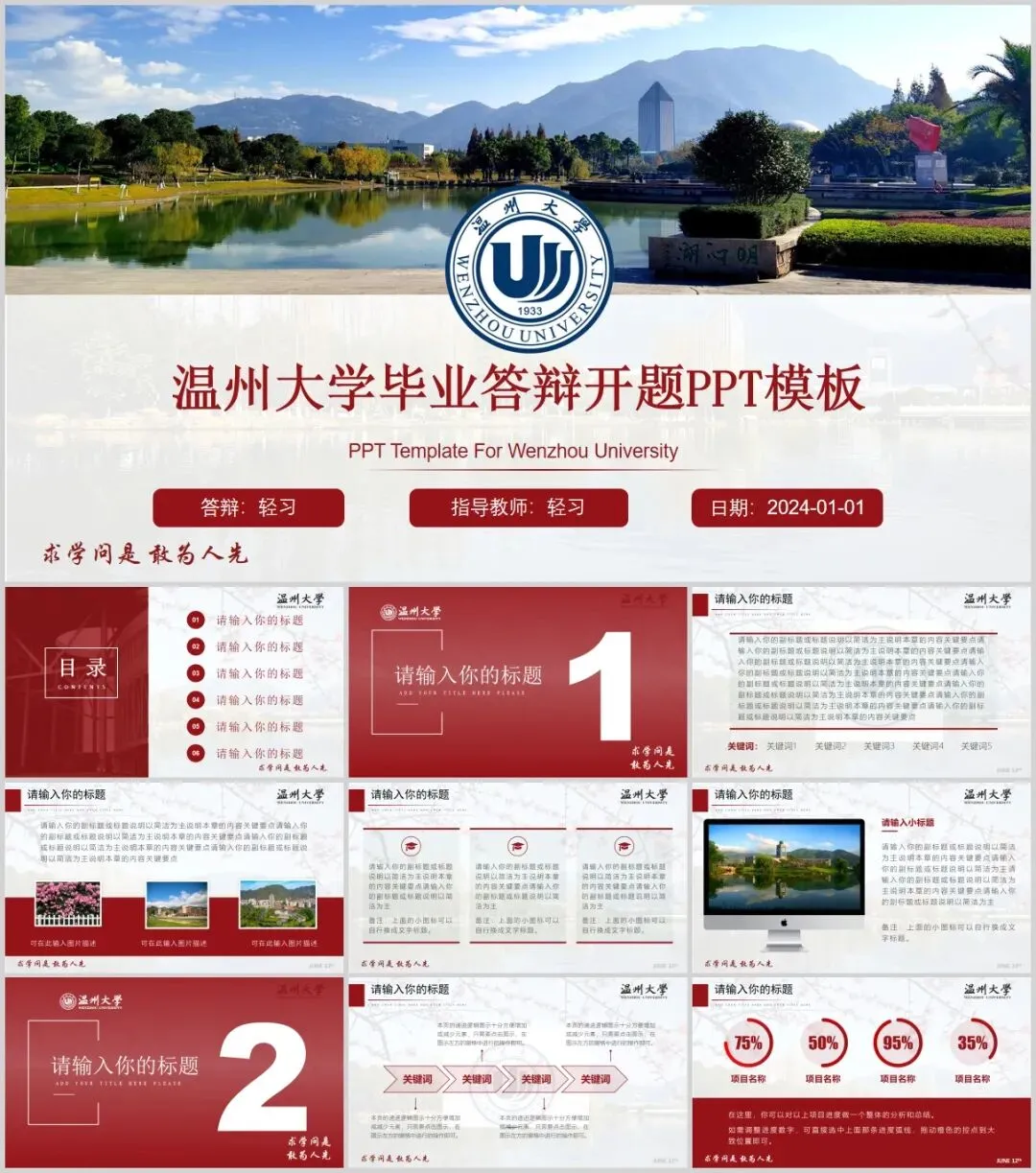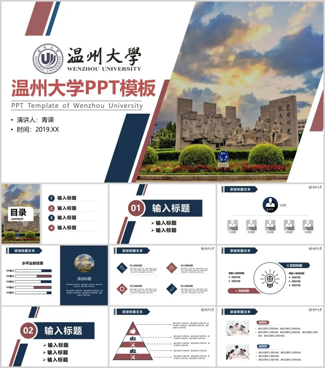 温州大学专属PPT模板来了,喜欢的同学不要错过啦!