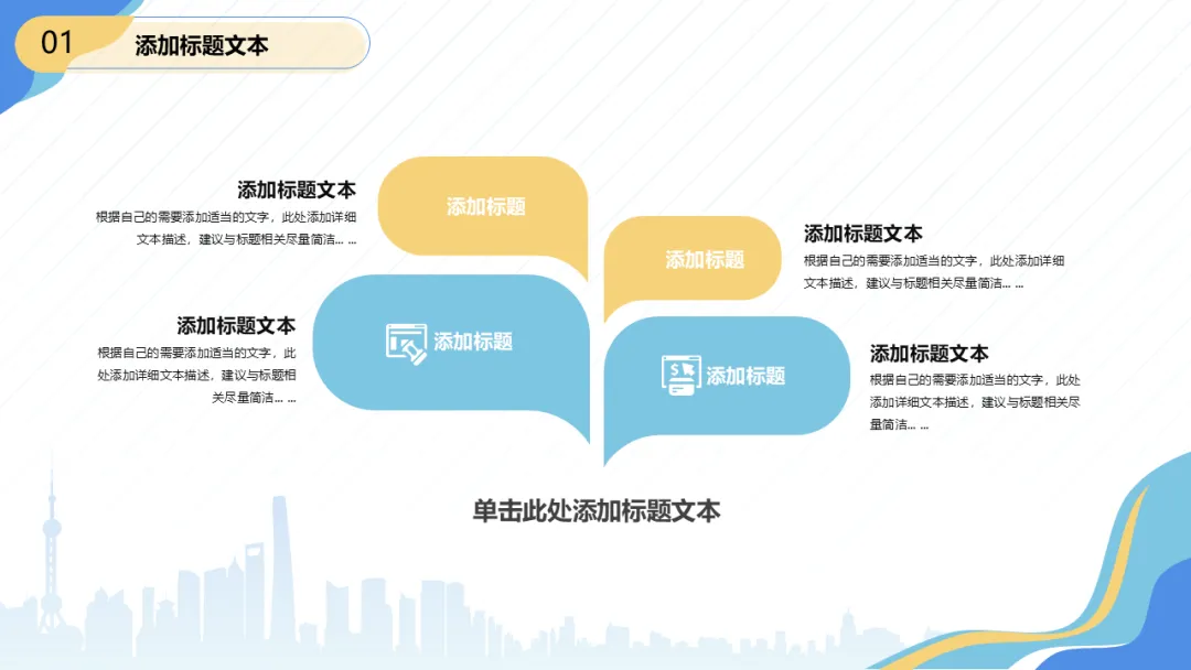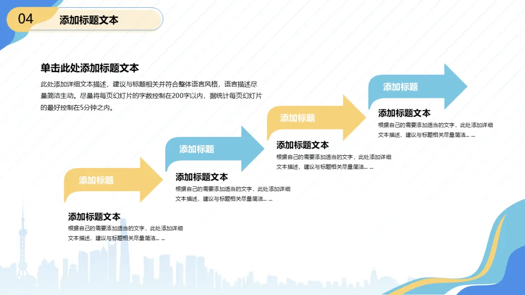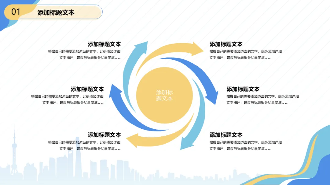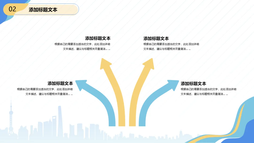 今天跟大家分享一份2026开年述职报告PPT模板,共23P,静态,流体几何风开年述职报告PPT模板,本模板共23P,渐变斜线条纹营造流动感,左上右下对角图形打破常规布局,城市剪影封面凸显商务格调。扁平化版式清晰易读,沉稳蓝调与活力明黄碰撞,适配述职汇报、工作总结等多场景。!