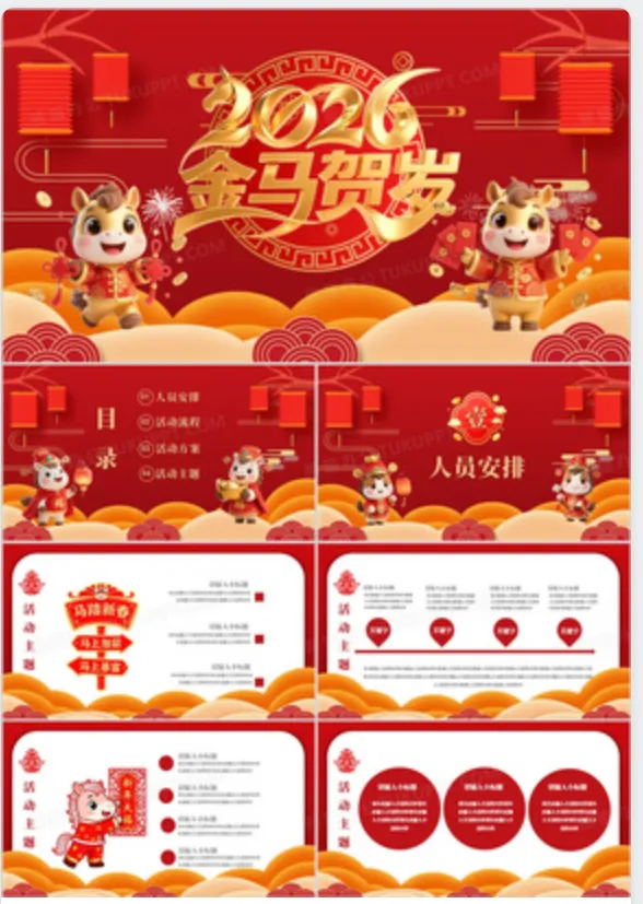 27套马年开门红PPT模板