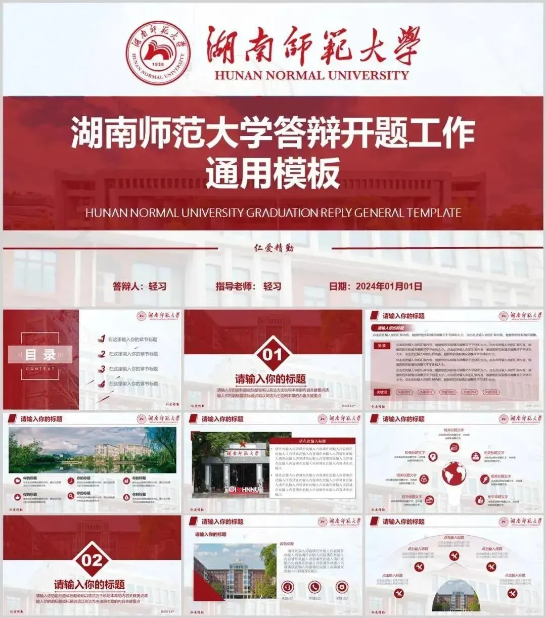 湖南师范大学专属PPT模板来了,喜欢的同学不要错过啦!