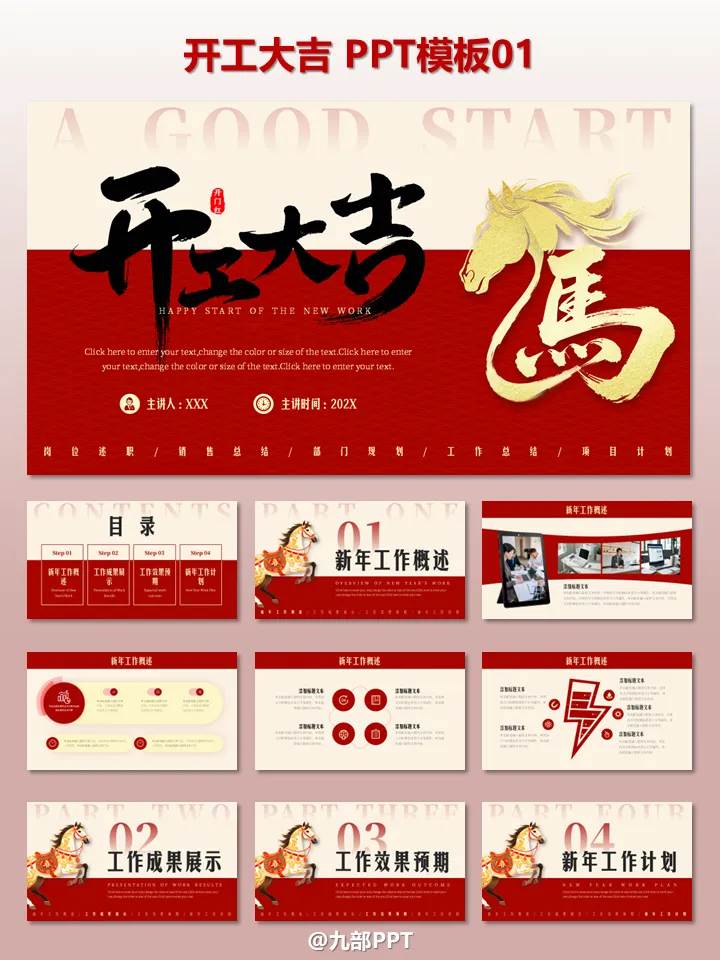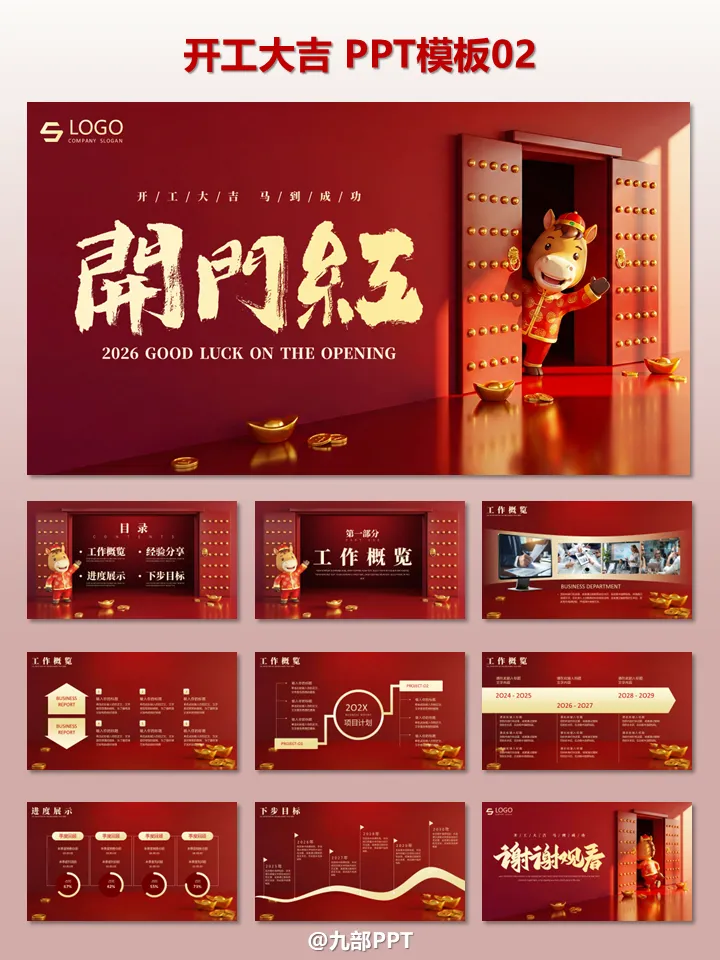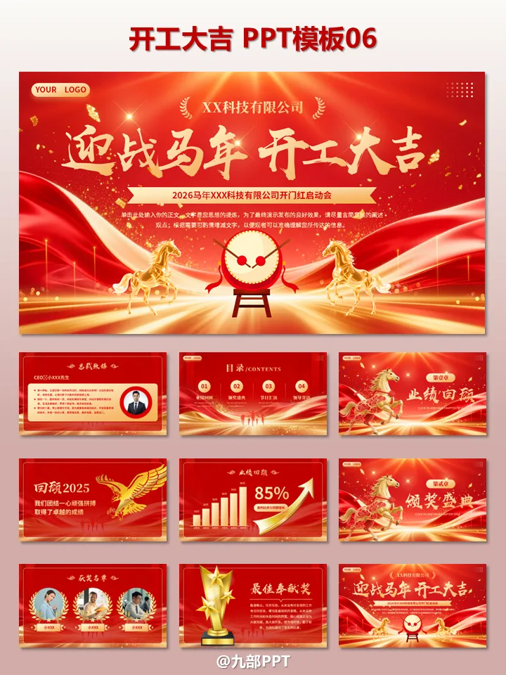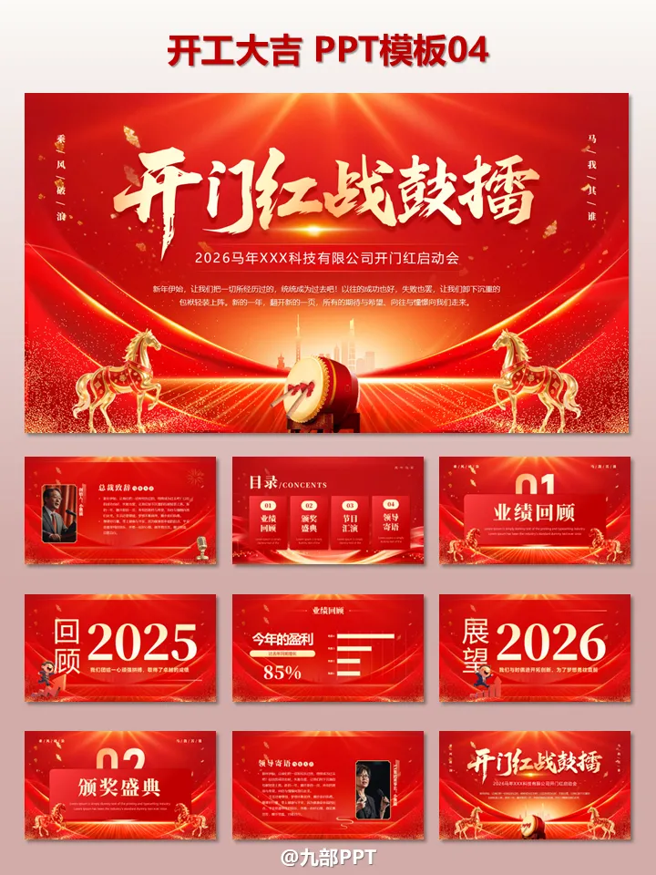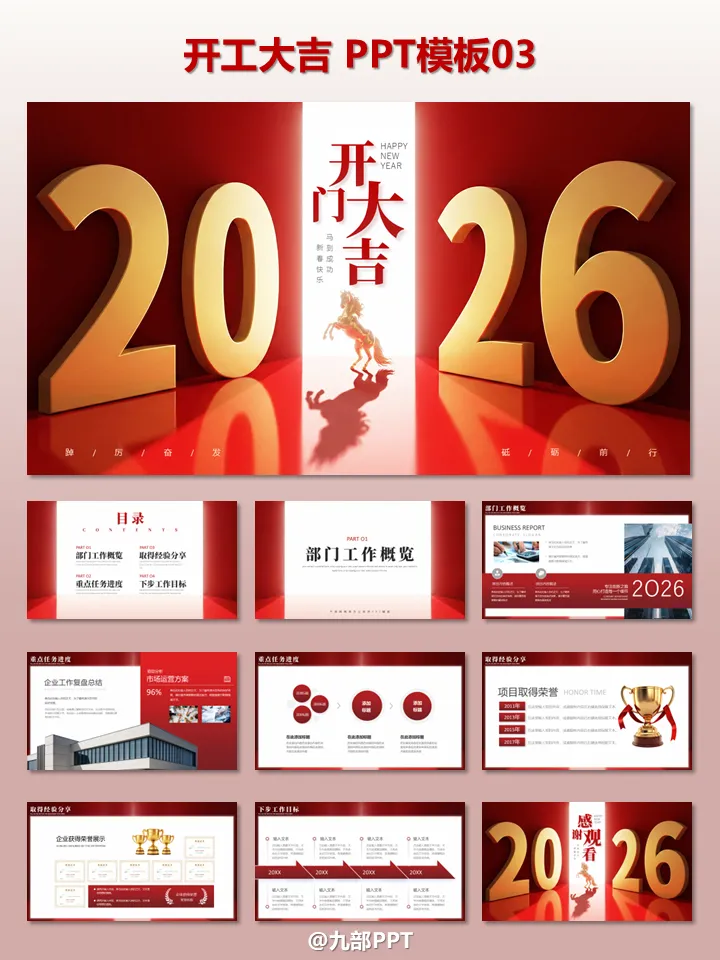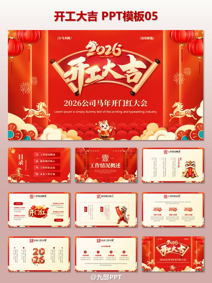 2026开工大吉!6套“开工大吉”PPT模板免费领。2026 丙午马年正月初九,各位职场人是否已经元气满满地回到工位?开工第一天,除了收心、领开工利是,一份高颜值的开工 PPT 绝对是提升团队士气、明确年度目标的必备神器!1. 开工大吉・新年工作全维度规划