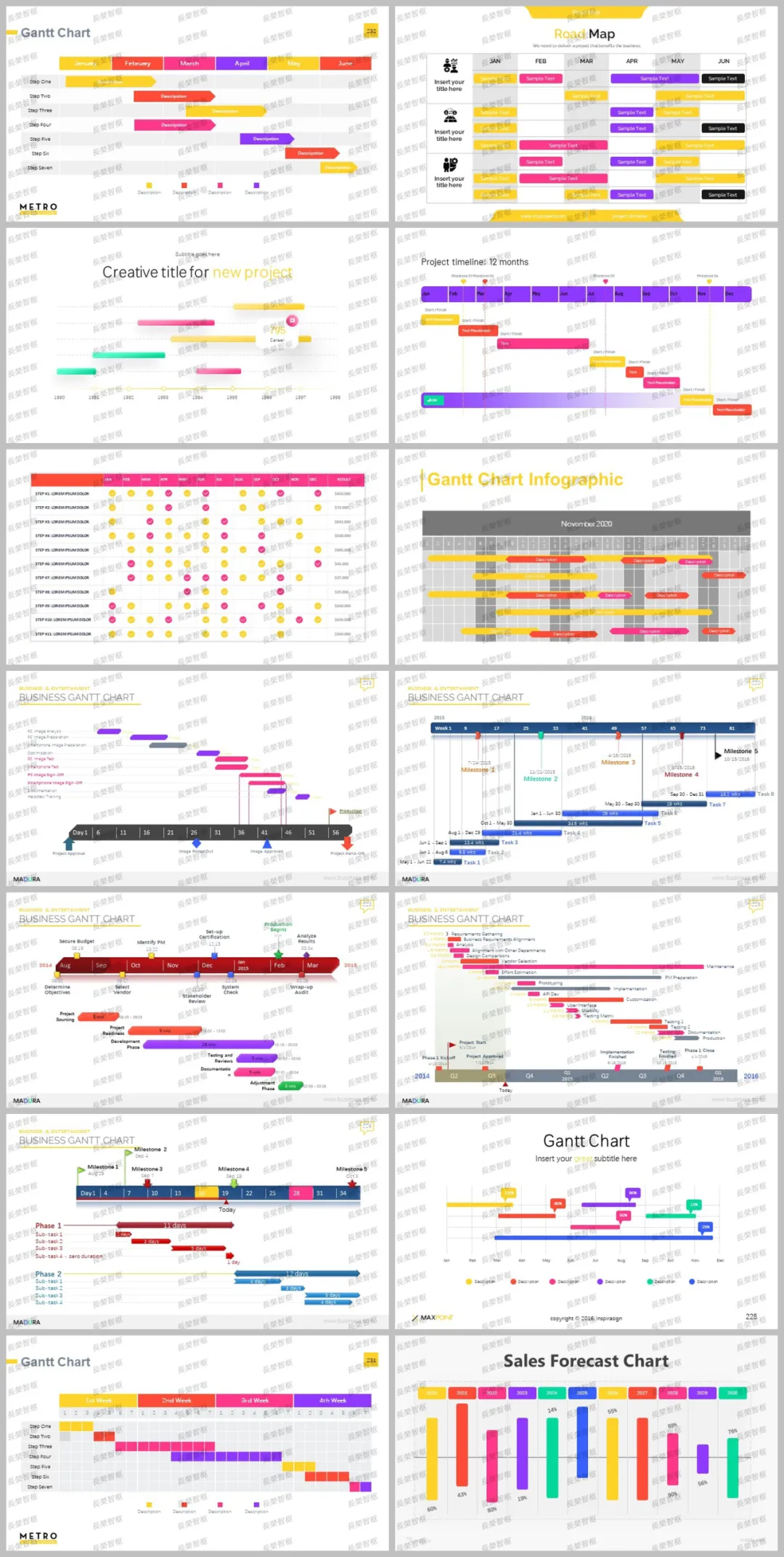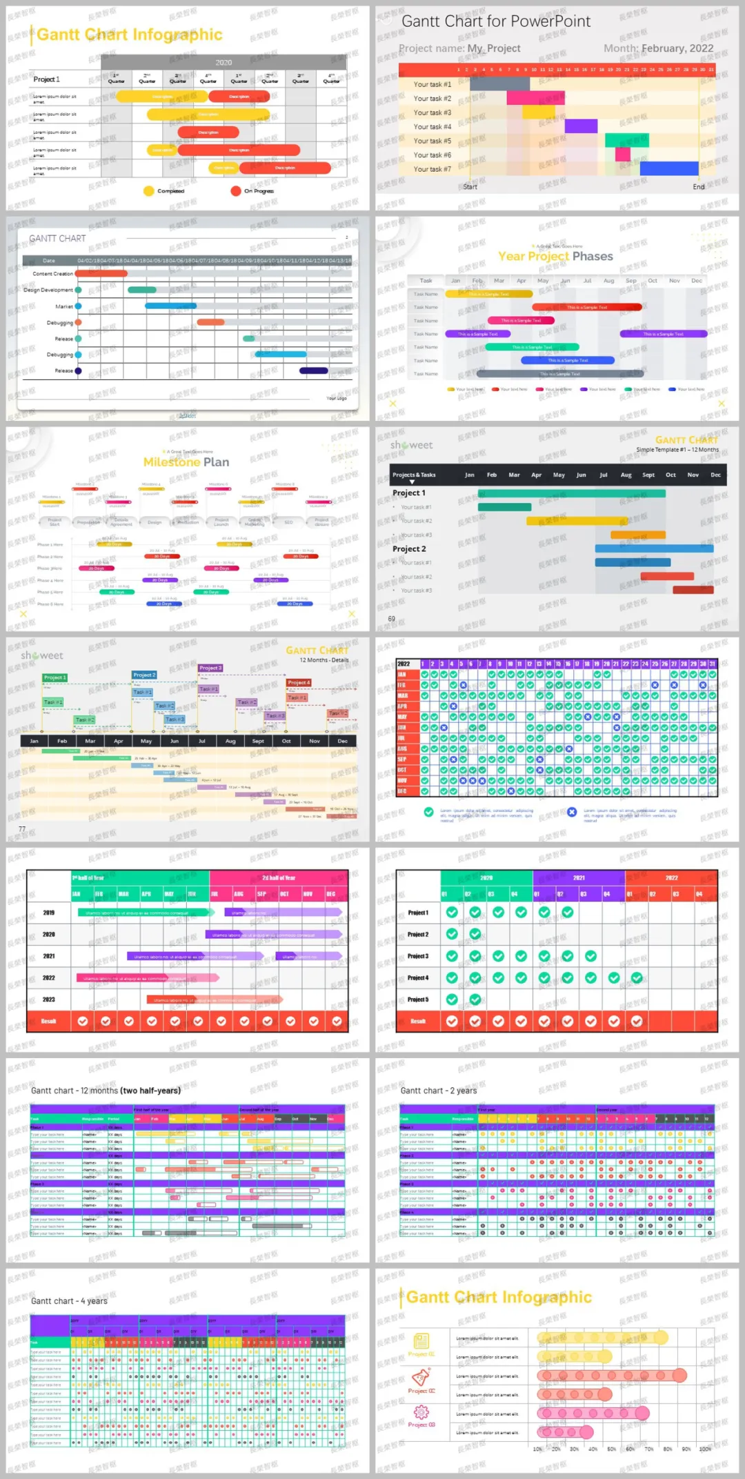 功能场景超全面:不仅有基础任务进度版,还有带进度百分比、负责人、预算跟踪、里程碑标注、任务依赖关系的专业版,甚至包含危机报告、营销计划、生产流程等行业专属模板。