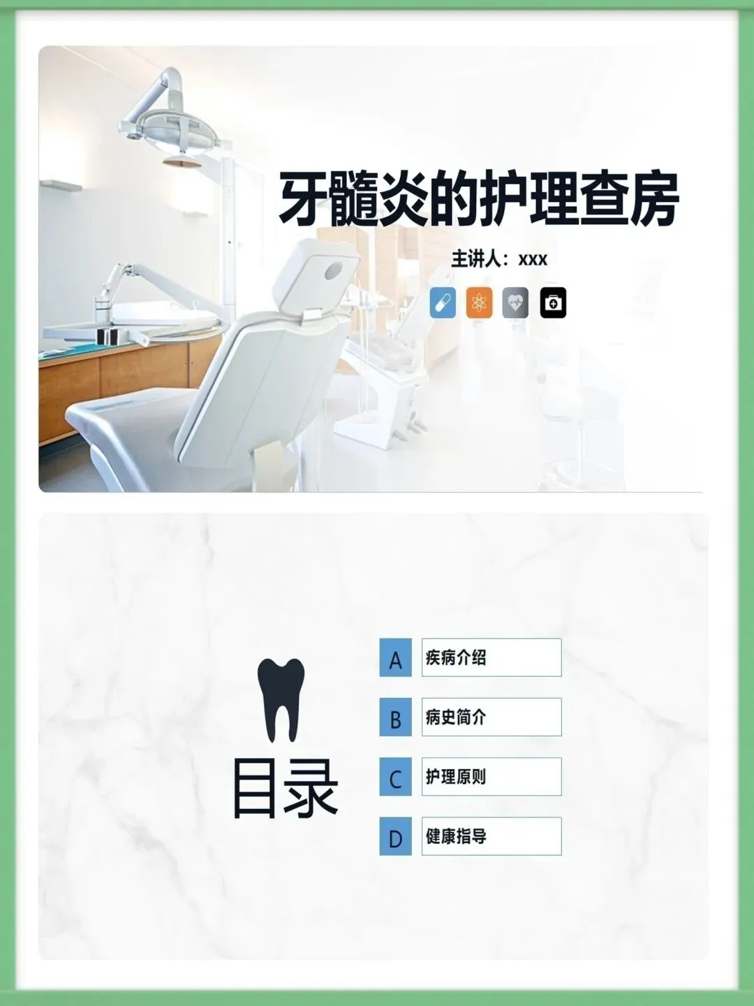 🌲名称:牙髓炎的护理查房ppt模板课件模板