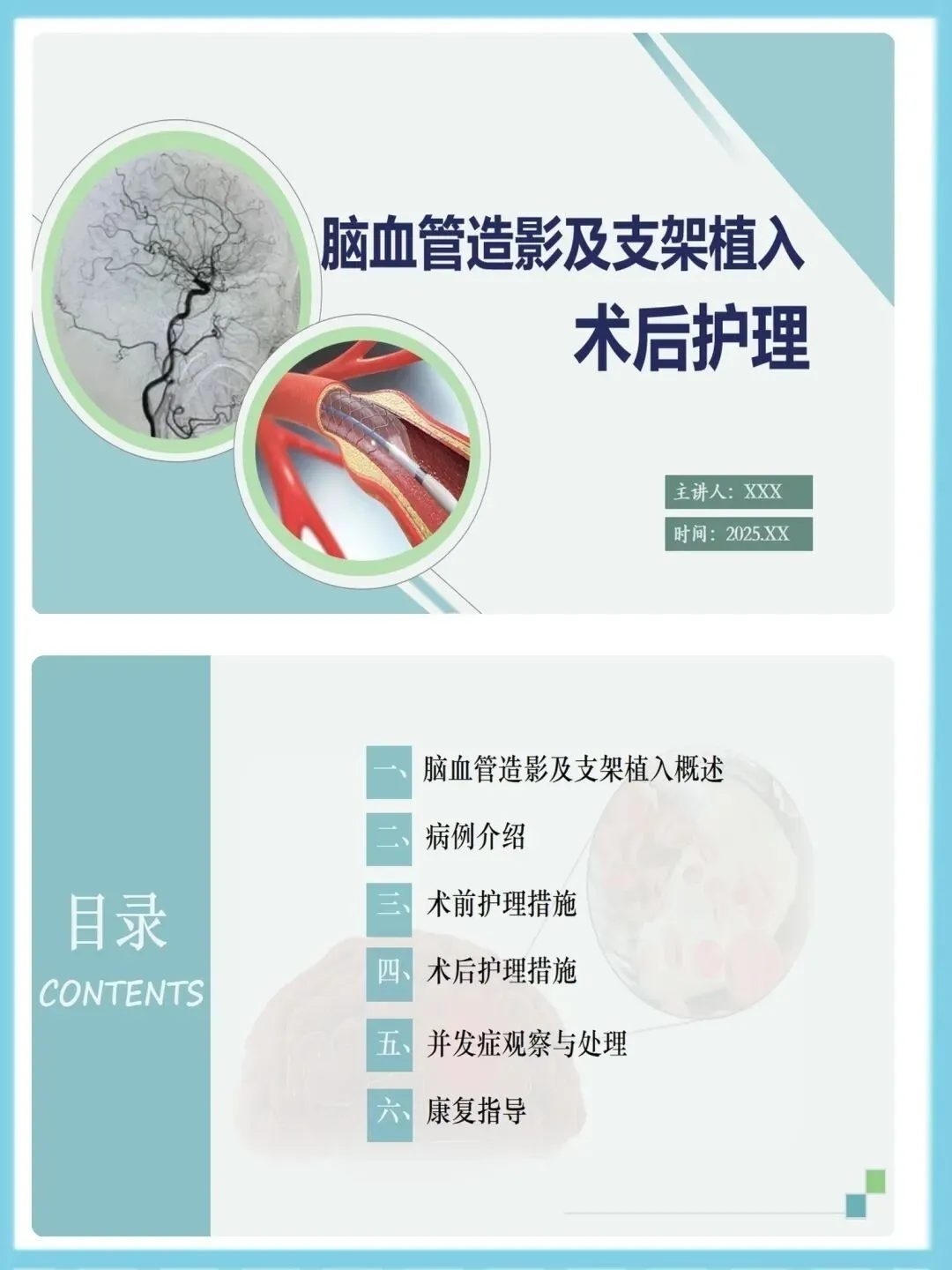 >脑血管造影及支架植入术后护理ppt模板(可编辑)
