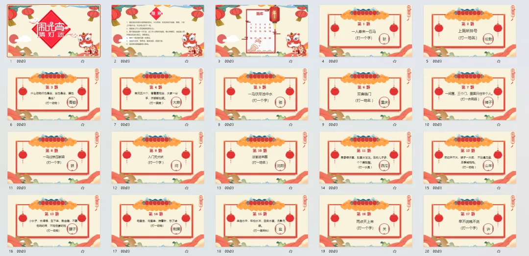 今天小麦给大家分享的是:38套元宵节猜灯谜系列PPT模板