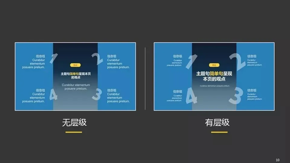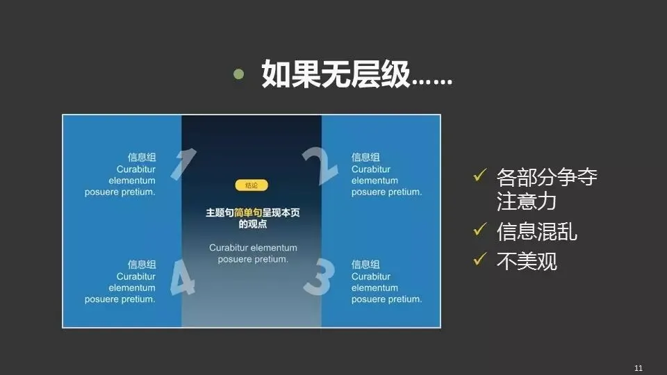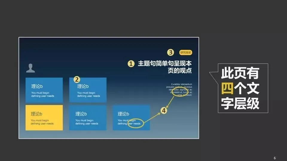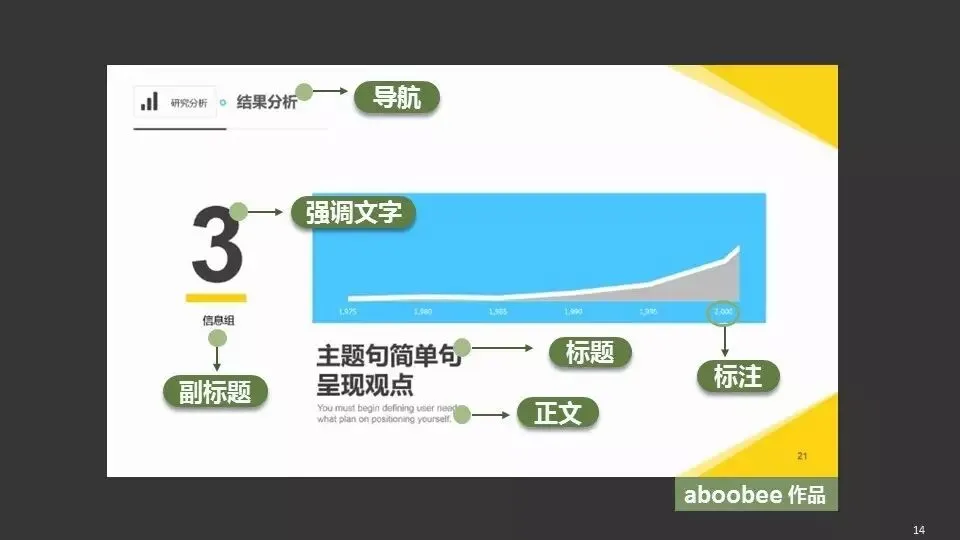PPT文字类型一般层级次序:强调文字→正副标题→导航→正文→标注