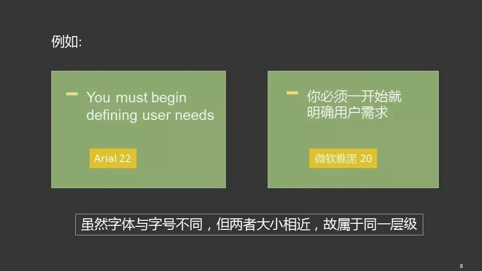 虽然字体与字号不同,但是因为二者大小相似,所以我们将其划分在同一个等级