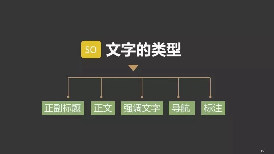 文字的类型:正副标题 正文 强调文字 导航 标注