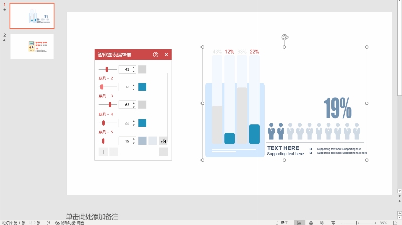 在工具里一键加入有趣、可调整数值的图表。